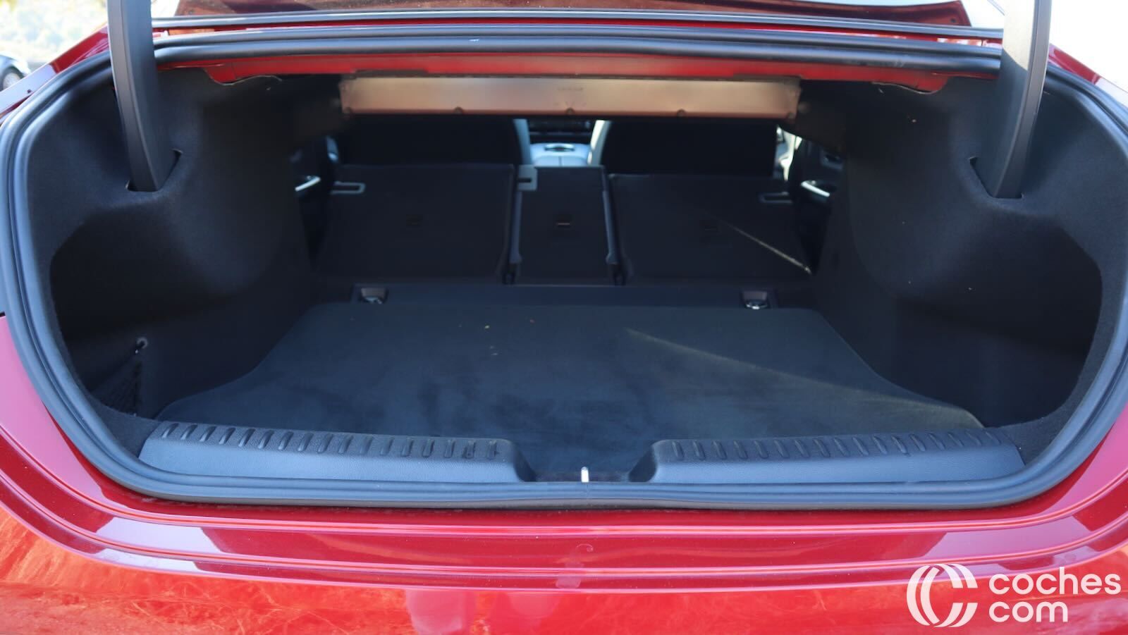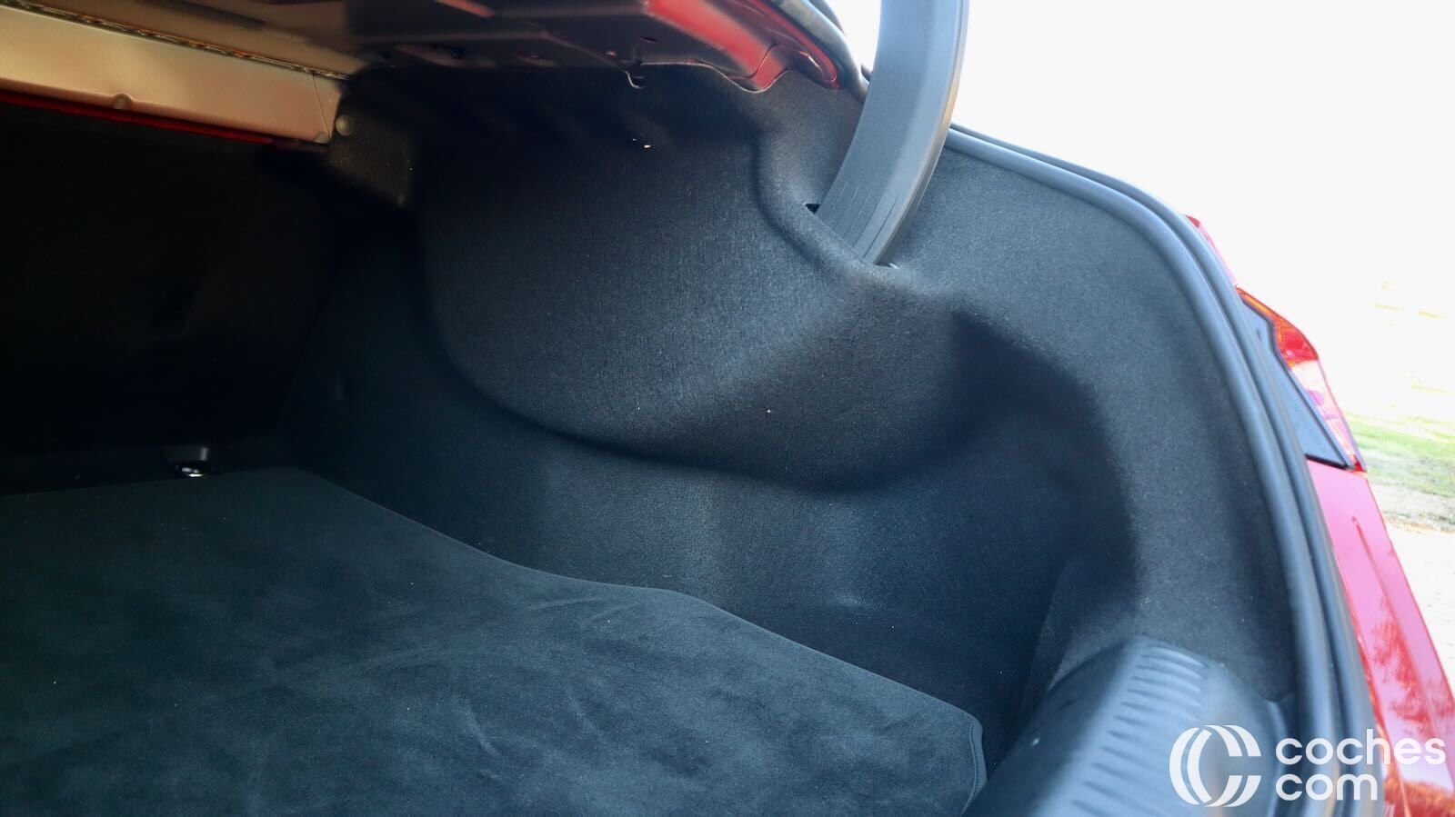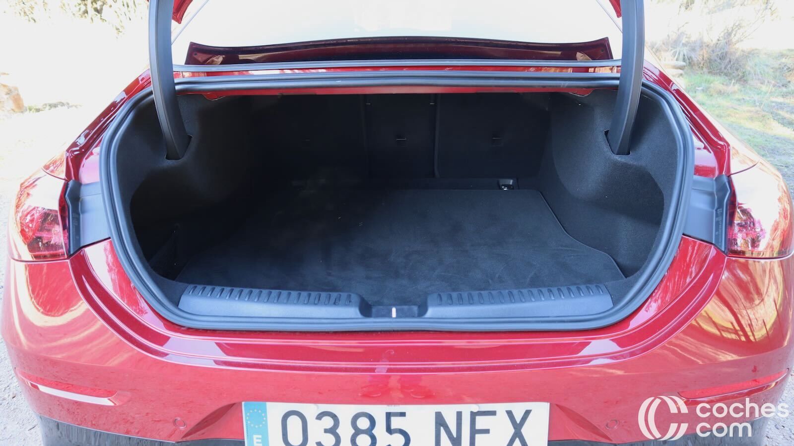 El maletero principal del CLA 250+ ofrece 405 litros, una cifra algo justa para una berlina de casi cuatro metros y tres cuartos. A la vista está correctamente rematado, con una moqueta gruesa, pero cuando te fijas con detenimiento te das cuenta que han dejado sin tapizar la parte superior del cofre. Tener chapa a la vista en un coche de 54.710 euros… es un detalle feo.