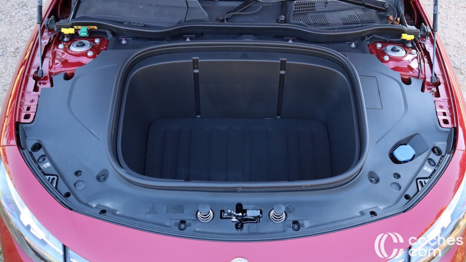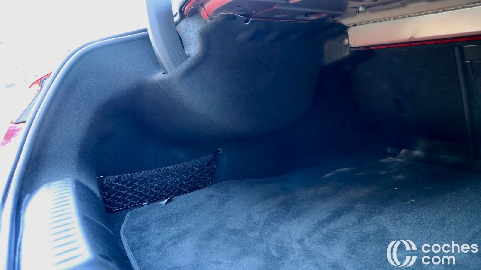 ¿Contras? No es amplio pero mejora la calidad de interiores de generaciones anteriores. El maletero no resulta práctico pero suma el frunk delantero muy amplio. Tiene muchas funciones en la pantalla, pero va genial e integra IA y servicios de Google como pocos.