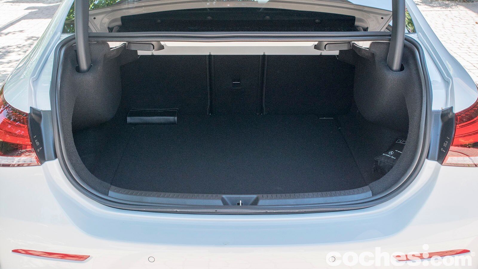 Aunque se trata de una berlina y el portón también condicionará. La boca de carga no es tan amplia como en el Clase A y queda a una altura superior, por lo que será más difícil introducir objetos más pesados y voluminosos. Por suerte, sus formas son muy aprovechables y se pueden abatir los asientos traseros en tres partes (40:20:40) para aumentar su capacidad. No nos ha gustado tanto que bajo el piso del maletero no haya espacio para rueda de repuesto, teniendo que conformarnos con el kit antipinchazos.