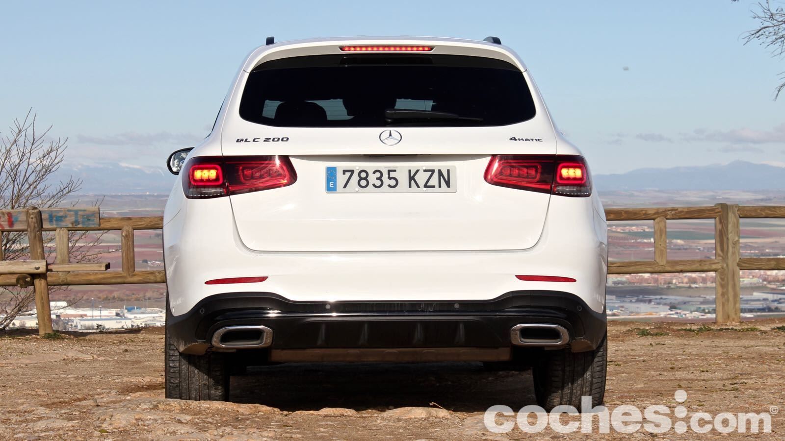 En la parte trasera nos encontremos con un paragolpes rediseñado, que integra en sus extremos la salida de escape, con embellecedores cromados. Con la línea AMG-Line integra el difusor Es diferente también la configuración de las luces traseras, para que sea igual al de otros SUV de la marca.