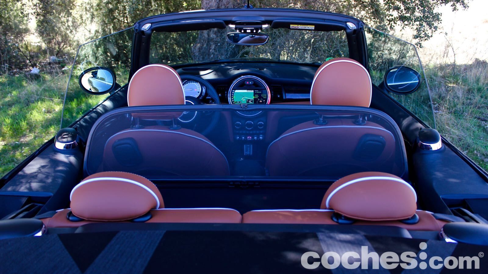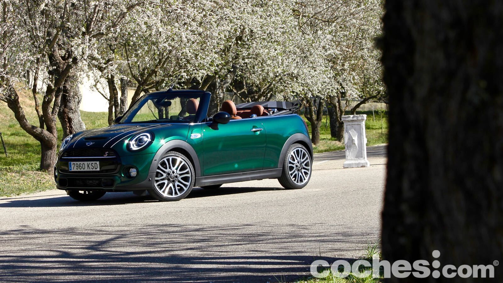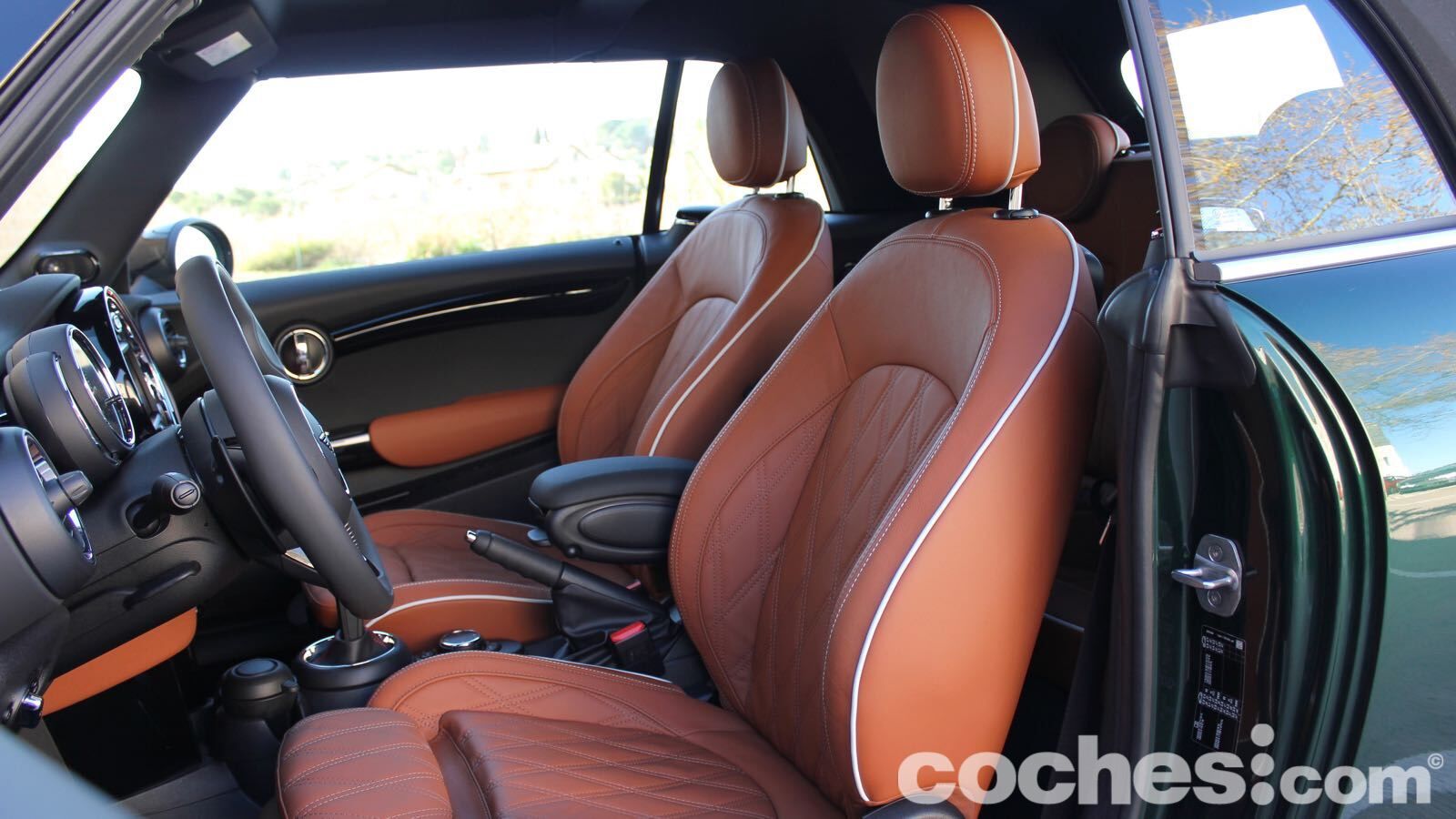 Claro, que hay que contenerse para no mejorar el aspecto con elementos como las llantas de 18 pulgadas bitono (1.300 euros) o la capota con la Union Jack (850 euros). Si además sumas el control de crucero adaptativo, navegador con pantalla de 8,8 pulgadas (compatible con Apple Carplay sin cable), Head Up Display, los asientos tapizados en piel calefactados, el paquete exterior negro, asistente al aparcamiento automático, cámara de visión trasera, posterior, equipo de sonido firmado por Harman Kardon… La cifra se dispara.