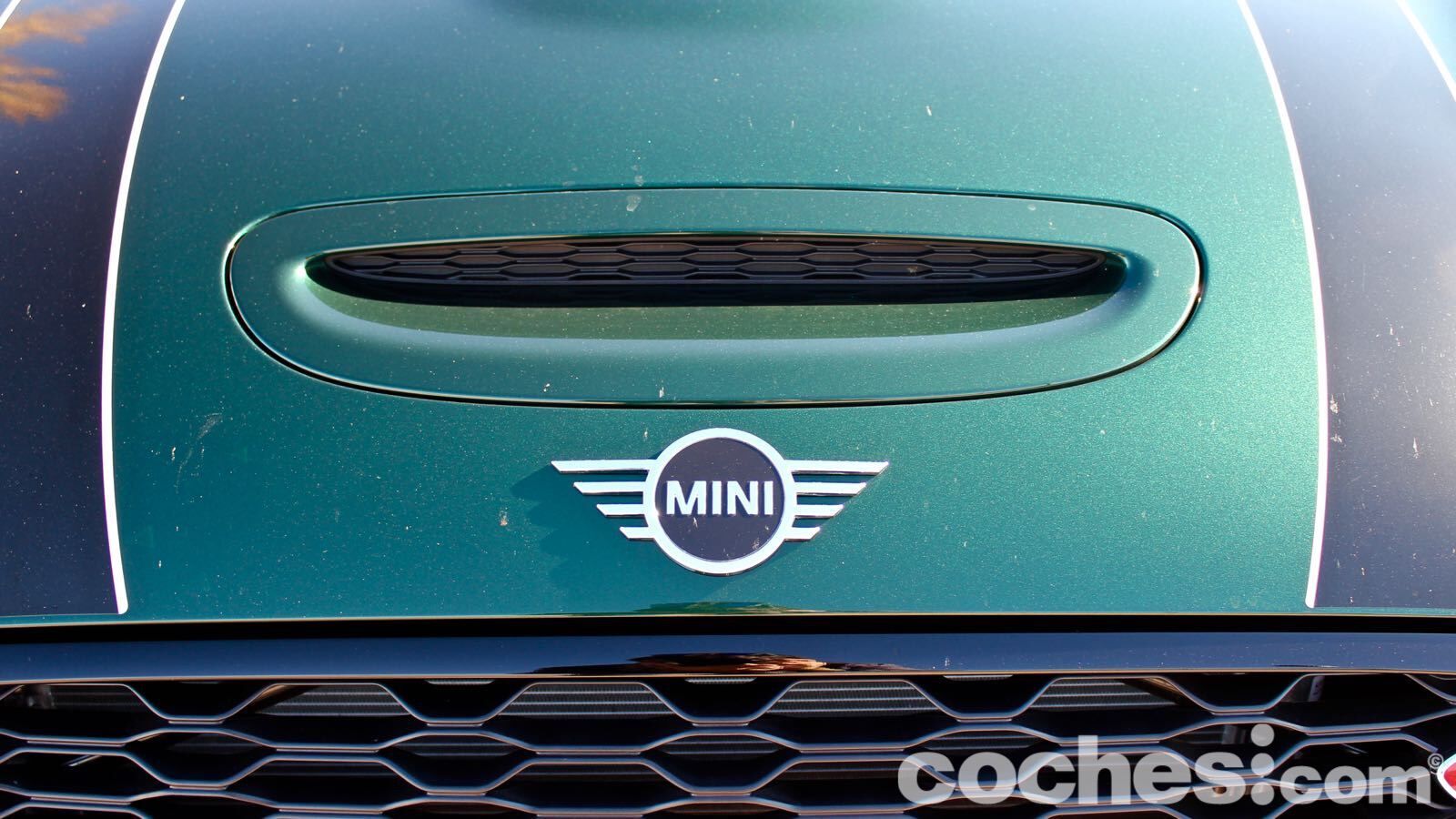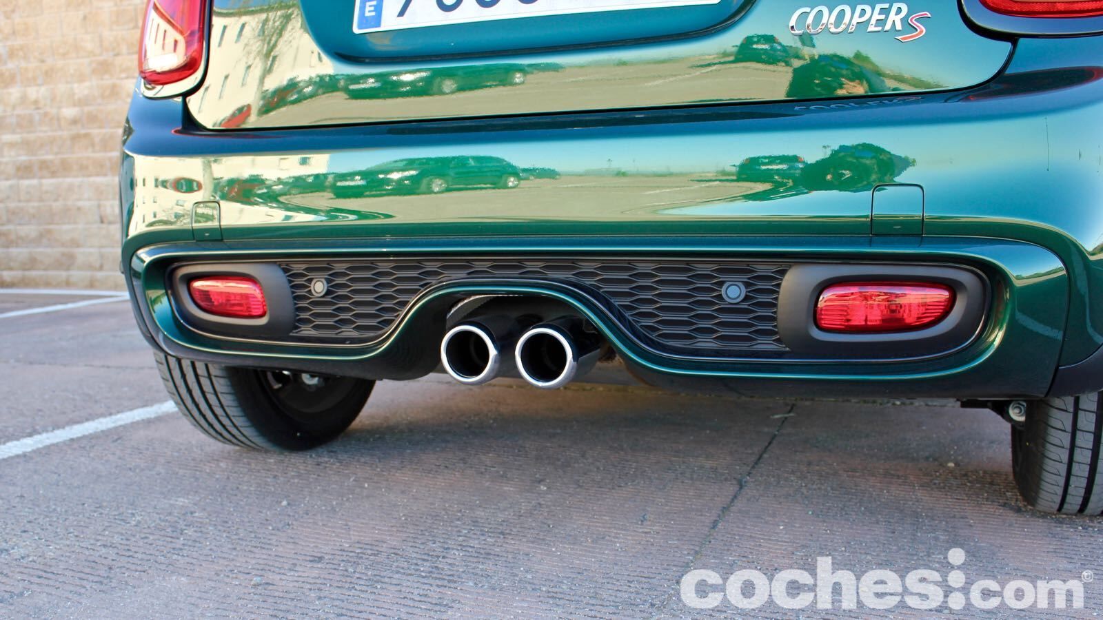 En la vista delantera esta versión Cooper S destaca ese frontal deportivo, con entradas de aire reales en la parte baja y los faros antiniebla a los lados del paragolpes. Hay otra en medio del capó que le da un punto de agresividad… pero que no es funcional. Las franjas negras en el capó son de esos extras que hacen ganar al coche en el apartado estético y que vienen en un paquete junto a las carcasas de los retrovisores negras, a juego con las molduras tras las placas de la matrícula.
