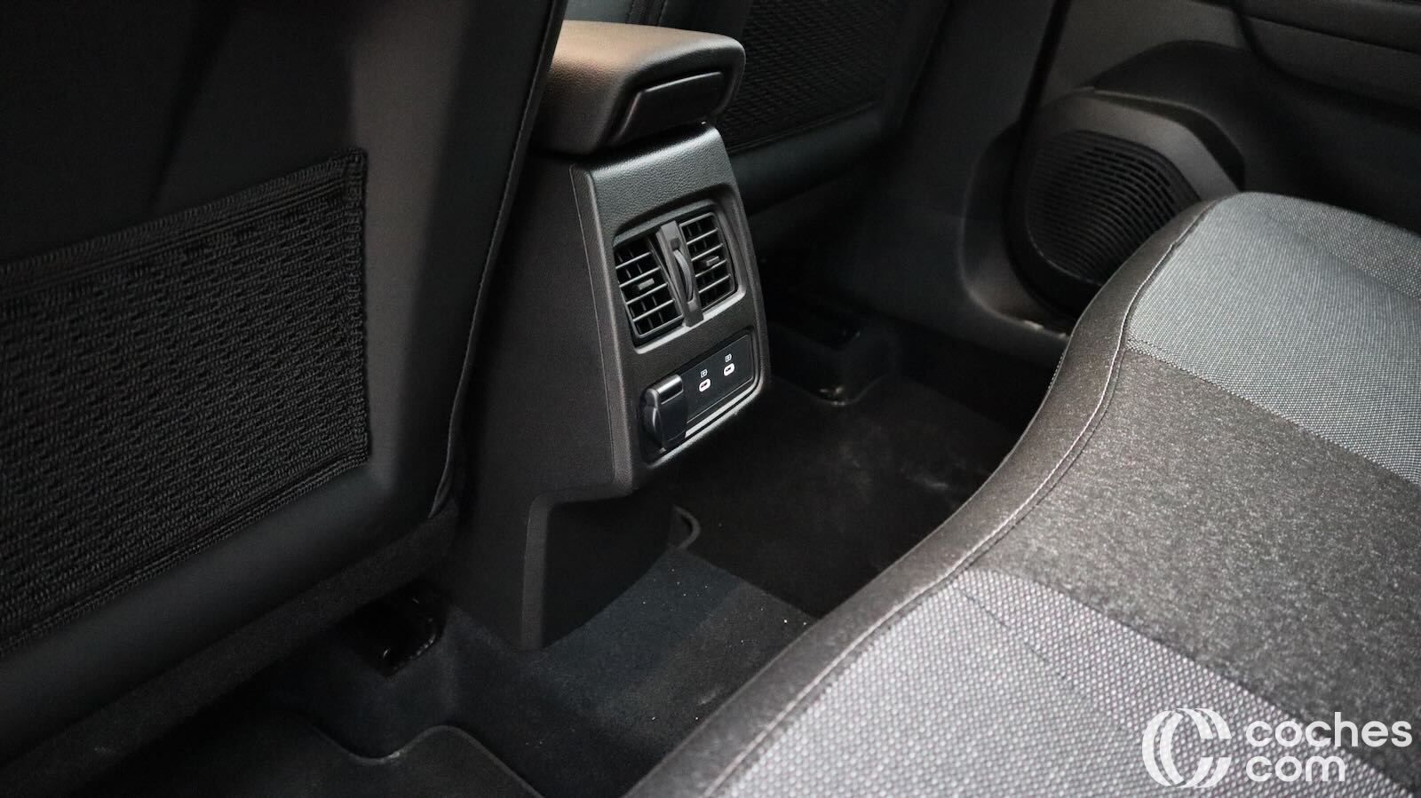 Algo más justo en anchura –la base es de un segmento B–, pero me ha gustado la calidad en general de la segunda fila y el hecho de contar con salidas de aire, tomas USB-C y una de 12 voltios al final de la consola central.