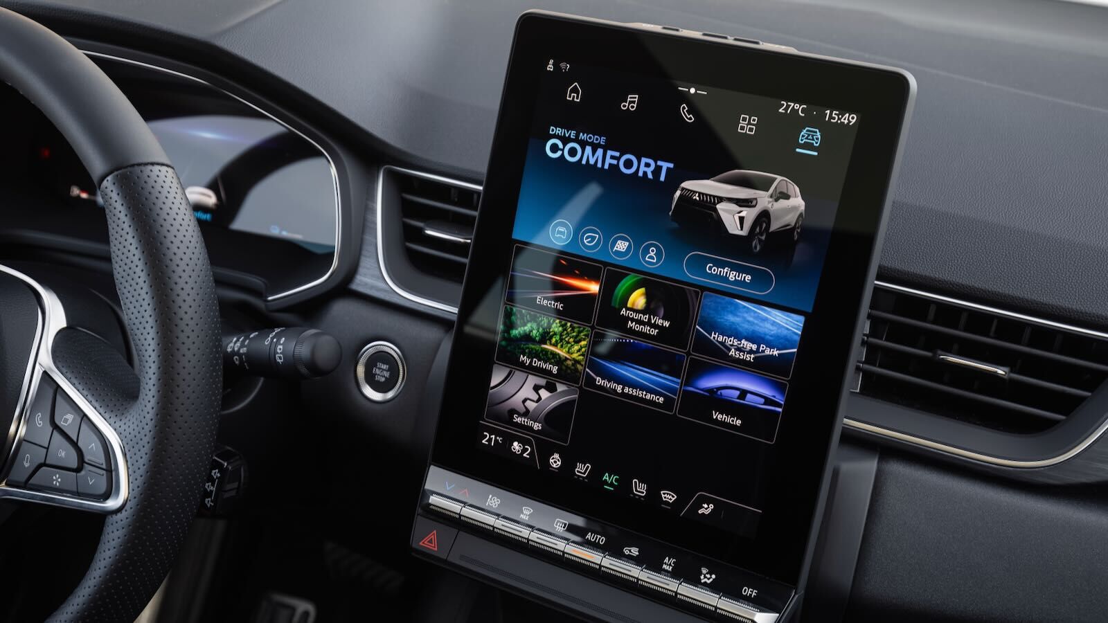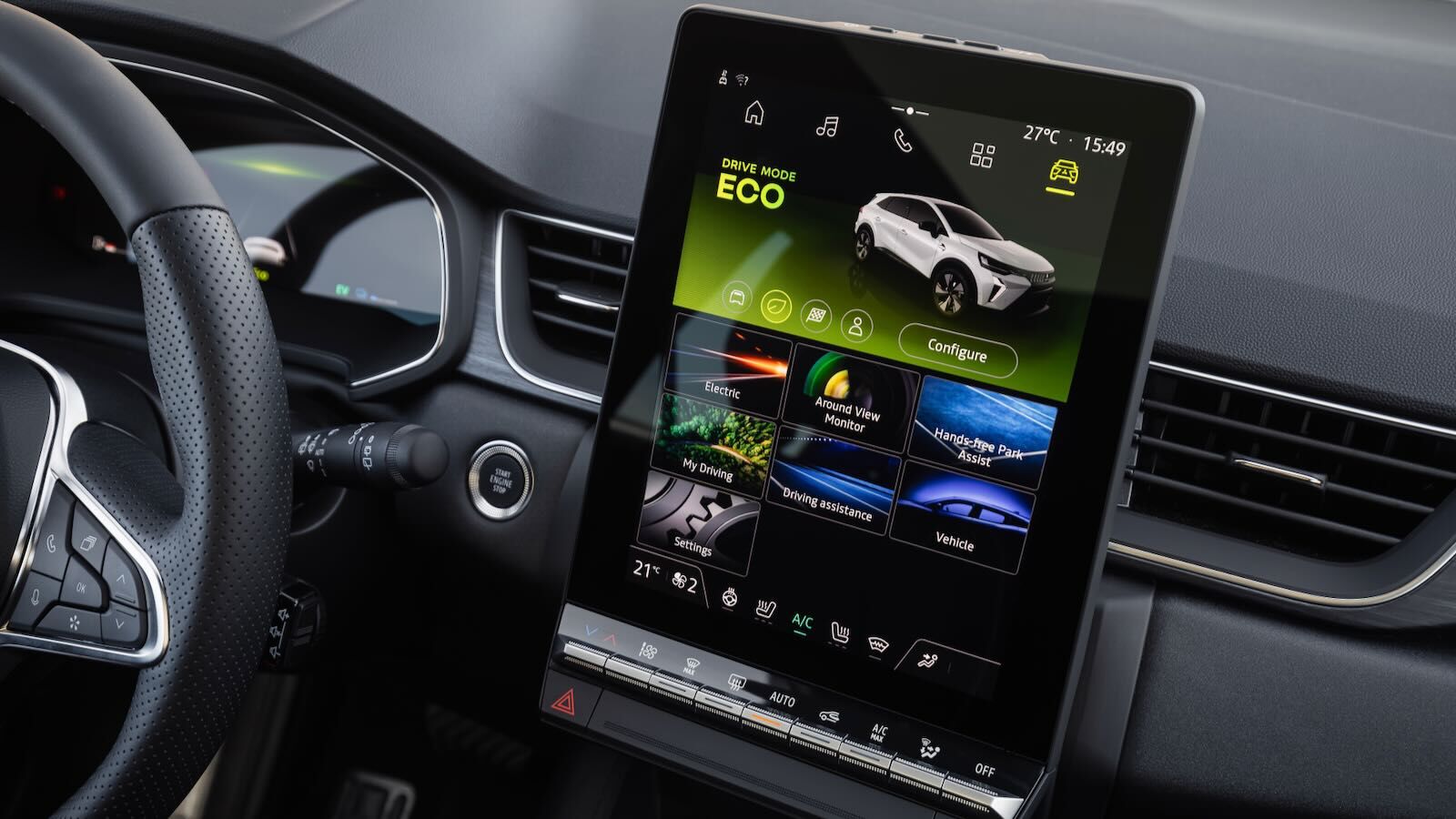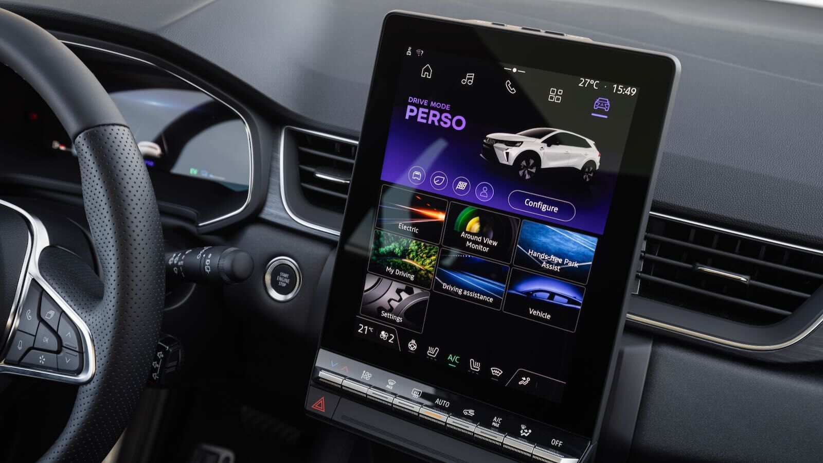 El cuadro de mandos se organiza en dos niveles, con una instrumentación digital de hasta 10,2 pulgadas muy configurable y una pantalla central vertical de 10,4 pulgadas para el sistema de infotainment —uno de los más avanzados del segmento, con Google integrado, compatibilidad Android Auto/Apple CarPlay inalámbricos y actualizaciones OTA de software—.