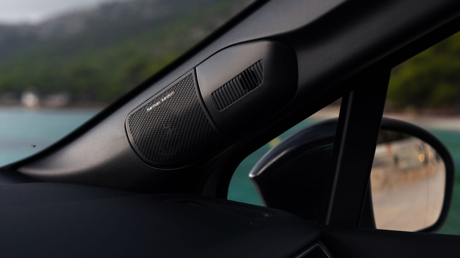 El cristal lateral es generoso, garantizando buena visibilidad, y el techo panorámico electrocrómico, exclusivo de los acabados superiores, refuerza la sensación de luminosidad y espacio.