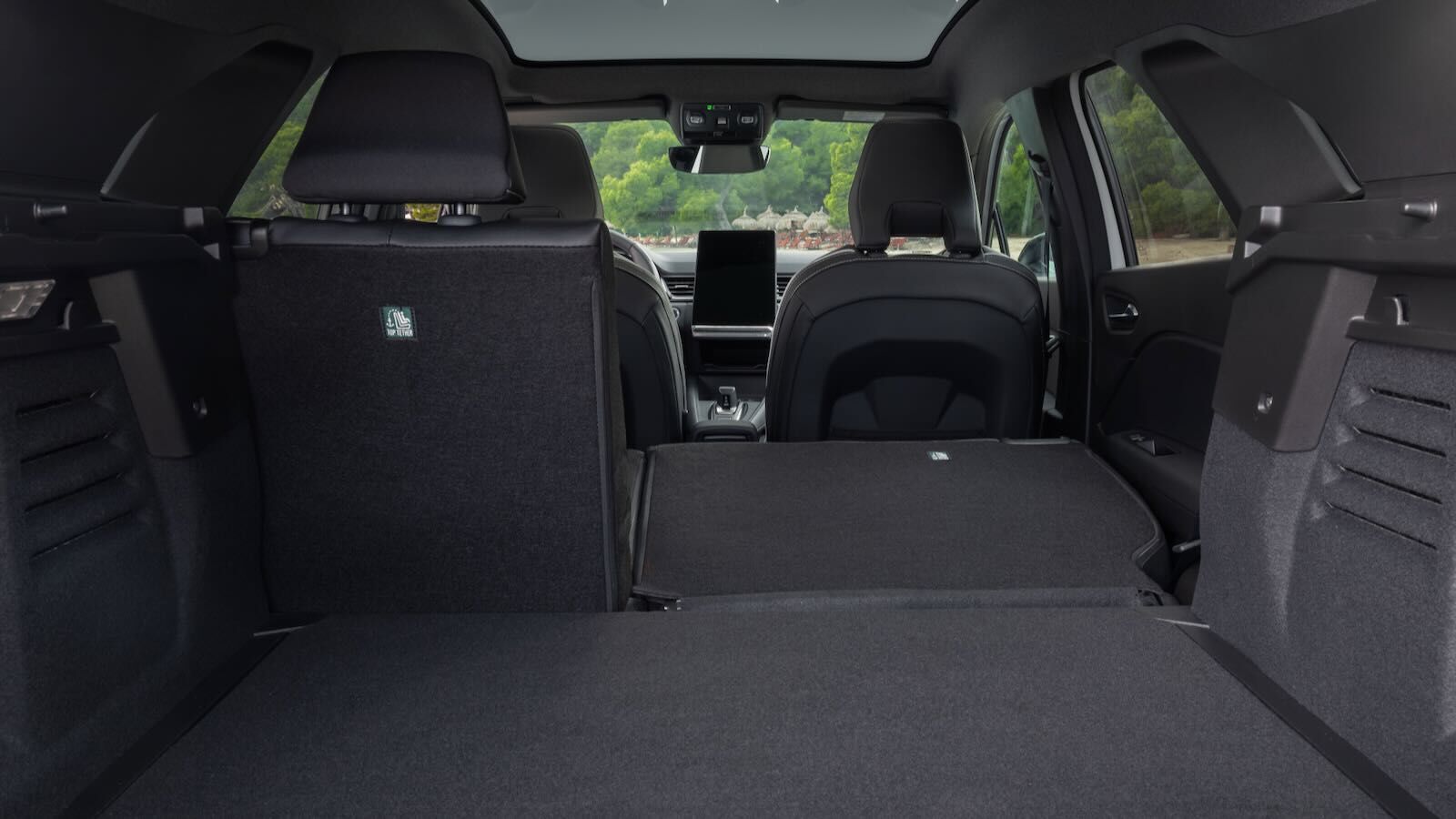 Abatiendo los respaldos, el volumen supera los 1.455 litros, quedando un espacio totalmente plano y aprovechable, ideal para actividades de ocio, carga ocasional o incluso mudanzas ligeras.