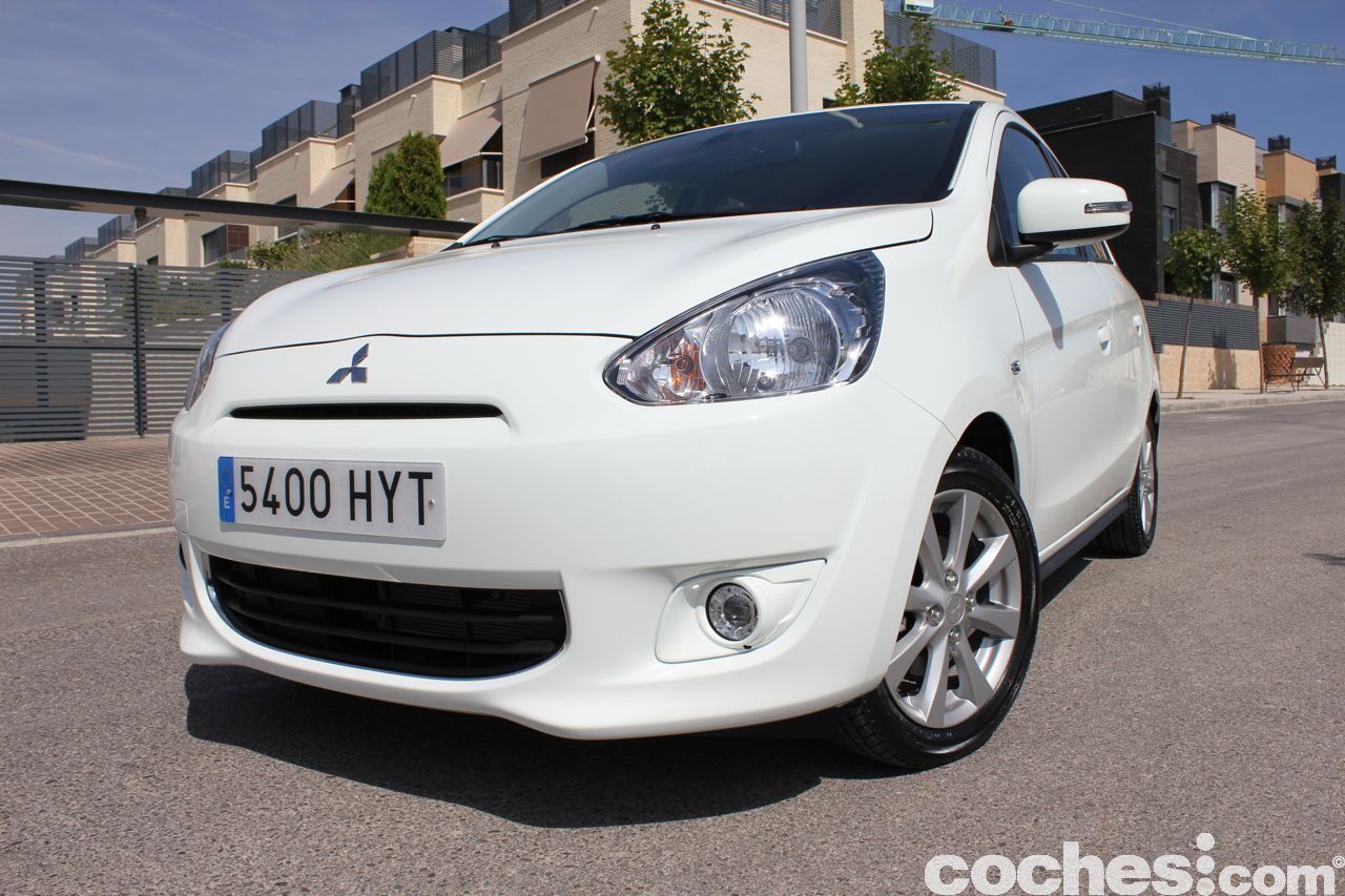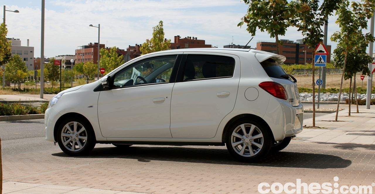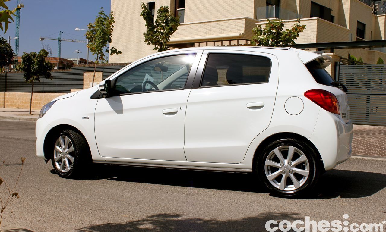 No hemos mencionado que el Mitsubishi Space Star mide 3.710 mm de longitud, 1.665 mm de anchura y 1.505 de altura, con una distancia entre ejes de 2.450 mm. Con estas cotas podemos ubicarlo entre los segmentos A y B, rivalizando con modelos como el trío de VAG (Skoda Citigo, Seat Mii y Volkswagen Up!) o el trío de PSA Toyota (Citroën C1, Peugeot 108 y Toyota Aygo). También otros como el Nissan Micra, el Hyundai i10... Y sin olvidar versiones más básicas de los utilitarios, desde luego.