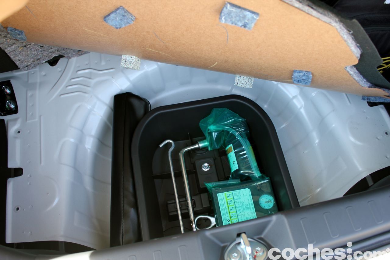 Debajo del piso podemos encontrar el kit reparapinchazos... aunque da la sensación de que podría cobijar una rueda de respuesto.