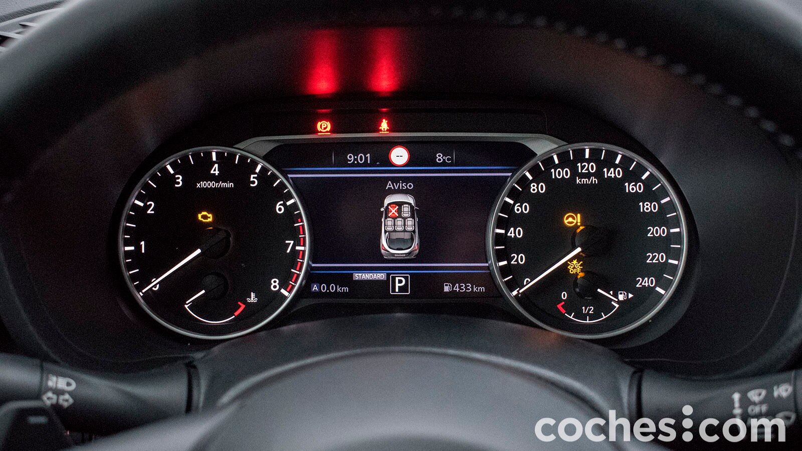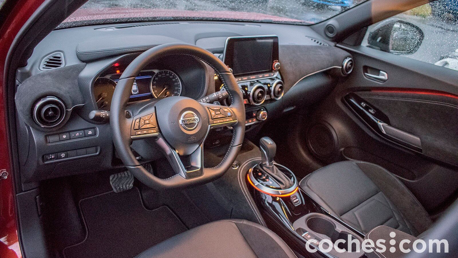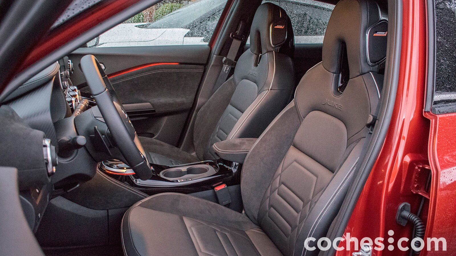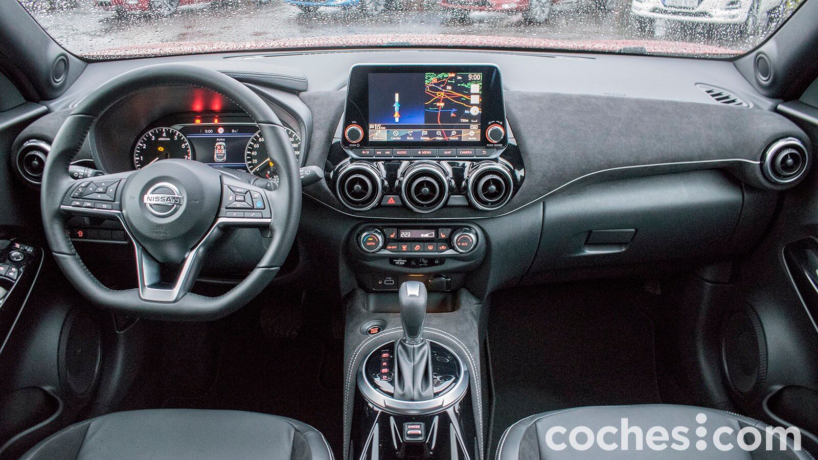 Porque otro de los ámbitos donde el Juke ha dado un salto importante es a nivel cualitativo. Se nota una gran evolución a nivel de materiales y acabados, dejando atrás las dudas que dejaba su antecesor y colocándose como uno de los mejores del segmento. Al menos en la unidad que probamos nosotros, una de las más altas de gama que contaba con tapicería de piel y otros detalles como las molduras imitando la fibra de carbono. En las puertas, salpicadero y consola central sigue habiendo plástico, pero no tiene mal tacto.