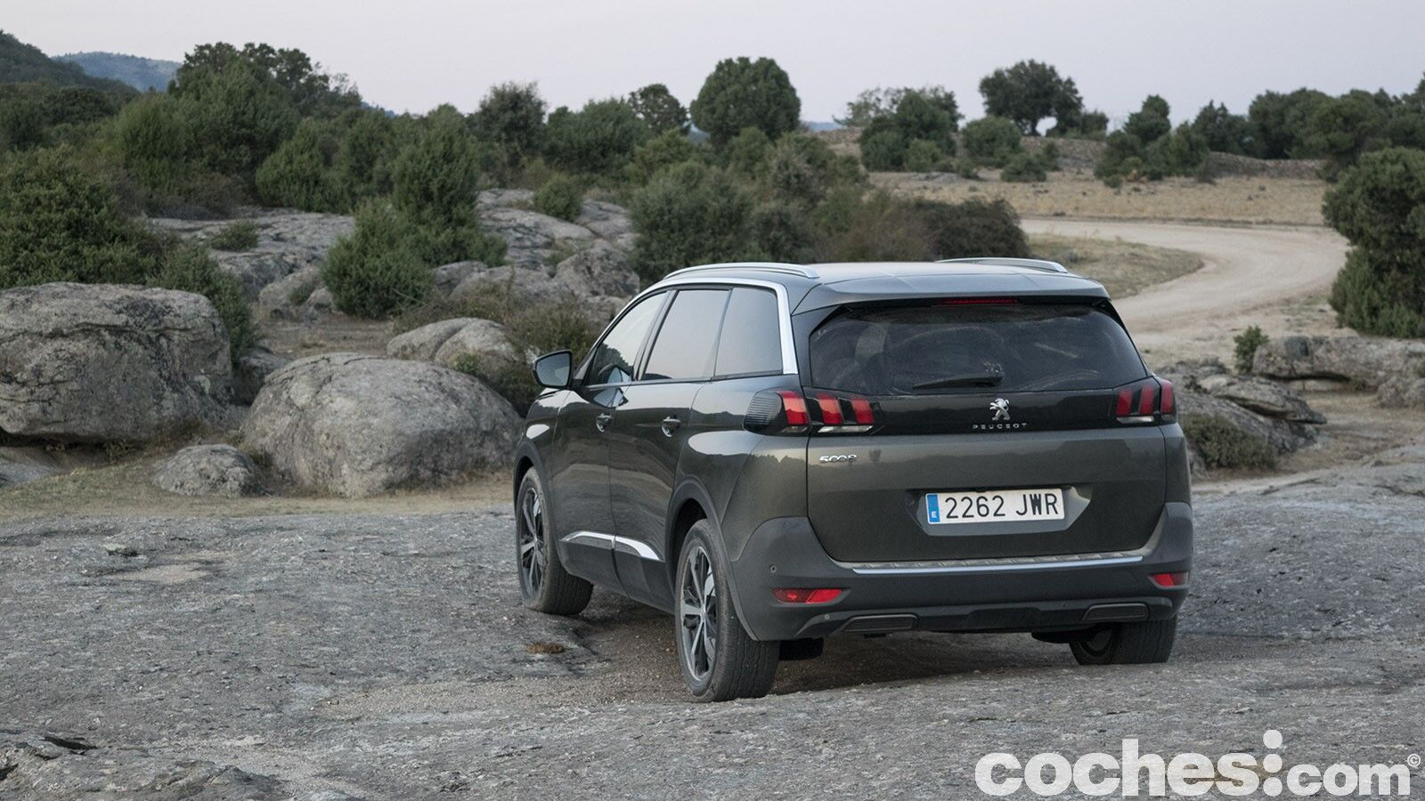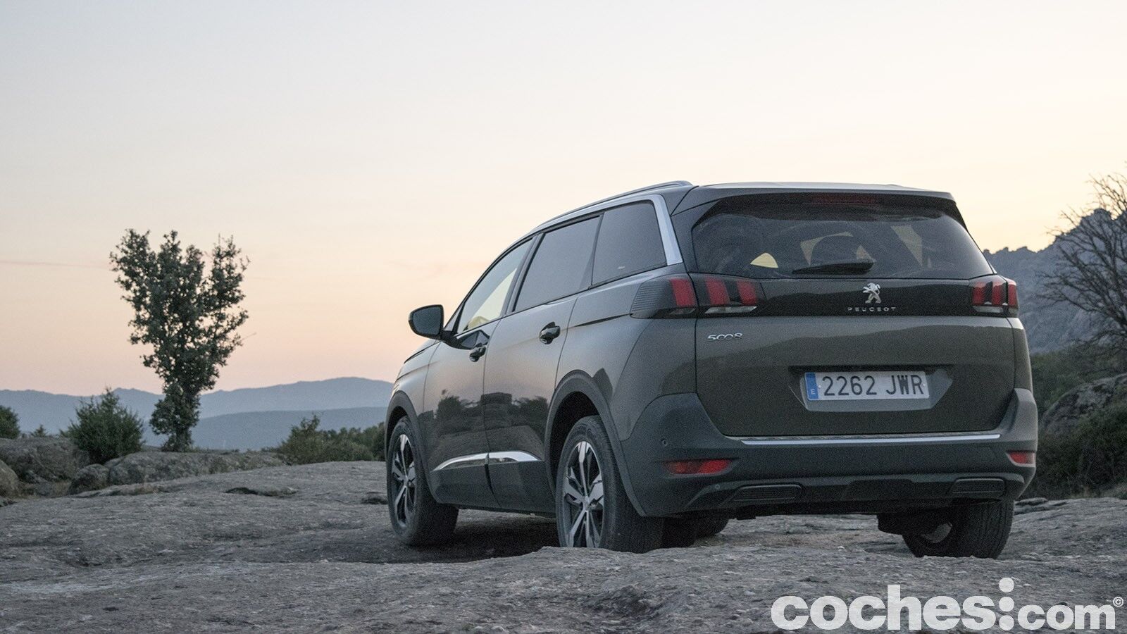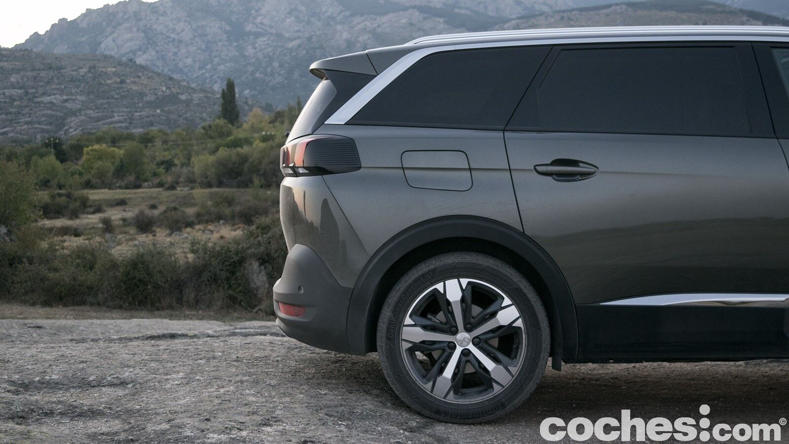 Llegamos a la zaga que es la zona más diferenciada respecto al 3008 por razones obvias. Sus formas son más rectilíneas y en la zona superior cuenta con un pequeño spoiler que parte del techo. Justo debajo de la luna hay una estrecha moldura de color negro que engloba los pilotos traseros (con barras verticales) y el logotipo del león. Por debajo queda el portón y en la zona inferior la protección plástica correspondiente que incluye los catadriópticos.