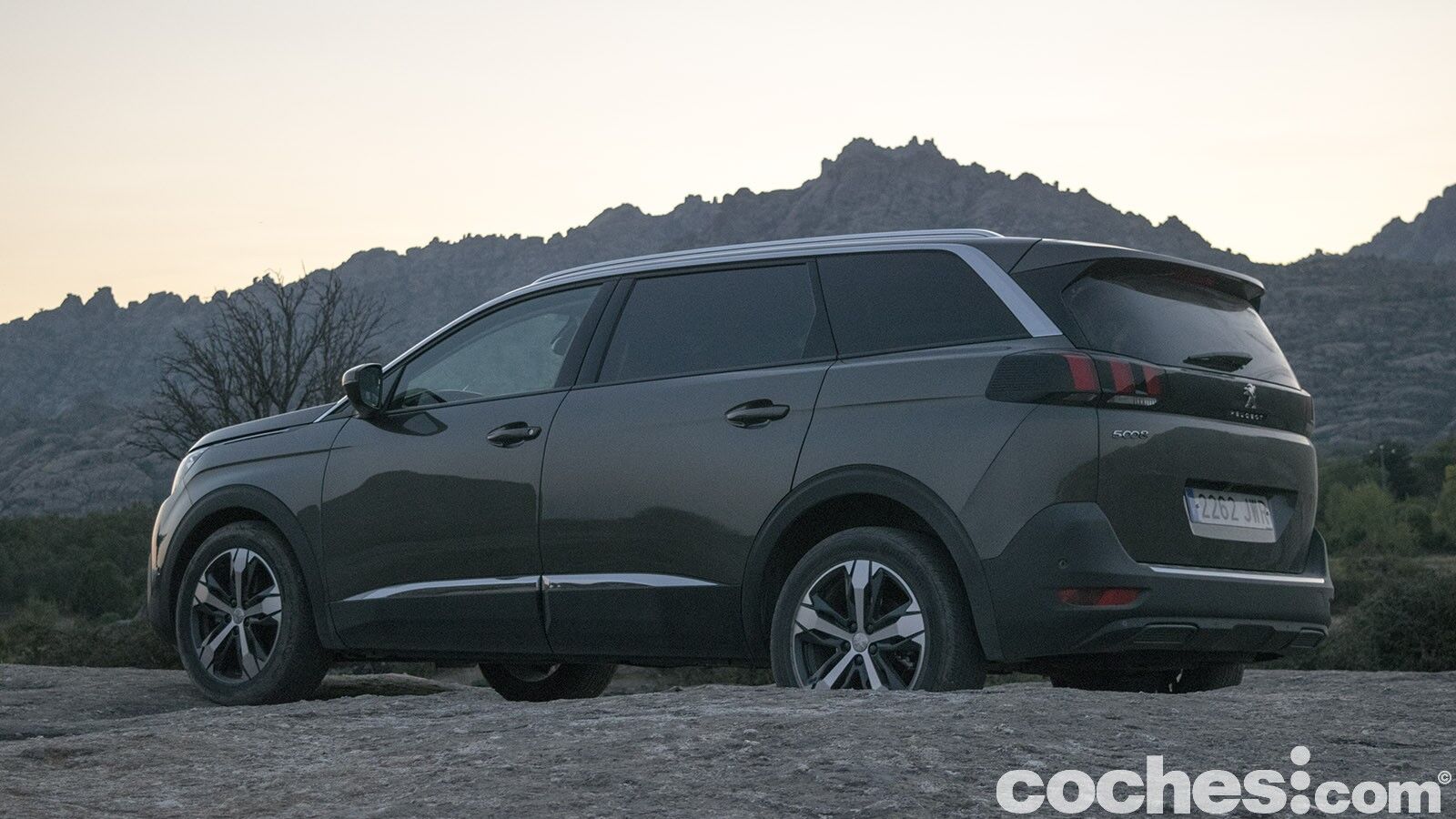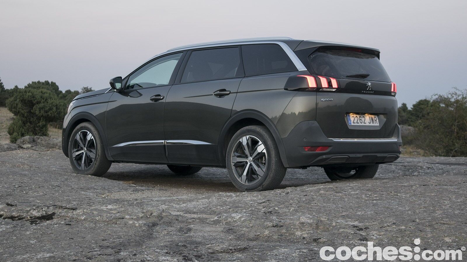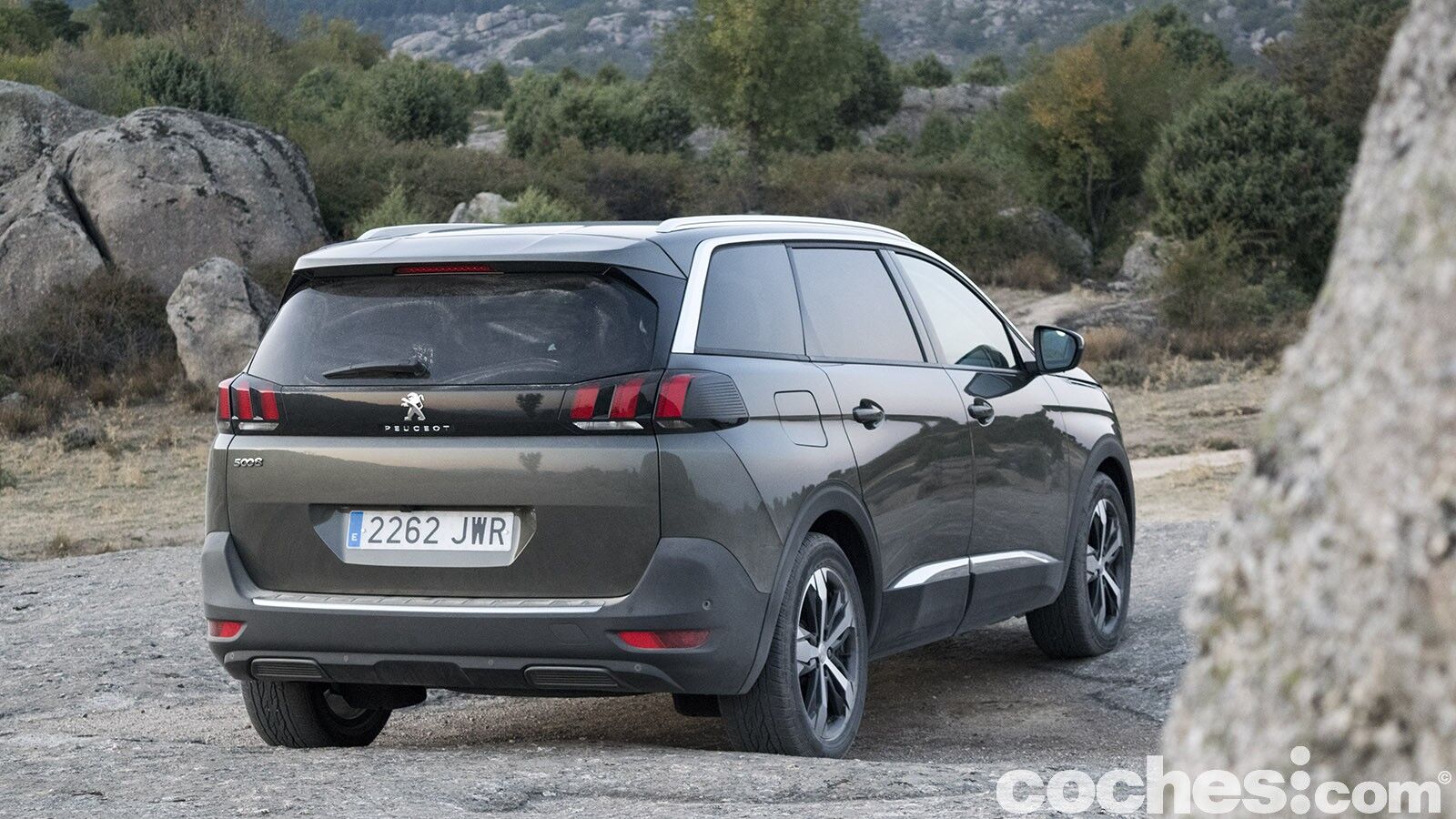 Llegamos a la zaga que es la zona más diferenciada respecto al 3008 por razones obvias. Sus formas son más rectilíneas y en la zona superior cuenta con un pequeño spoiler que parte del techo. Justo debajo de la luna hay una estrecha moldura de color negro que engloba los pilotos traseros (con barras verticales) y el logotipo del león. Por debajo queda el portón y en la zona inferior la protección plástica correspondiente que incluye los catadriópticos.