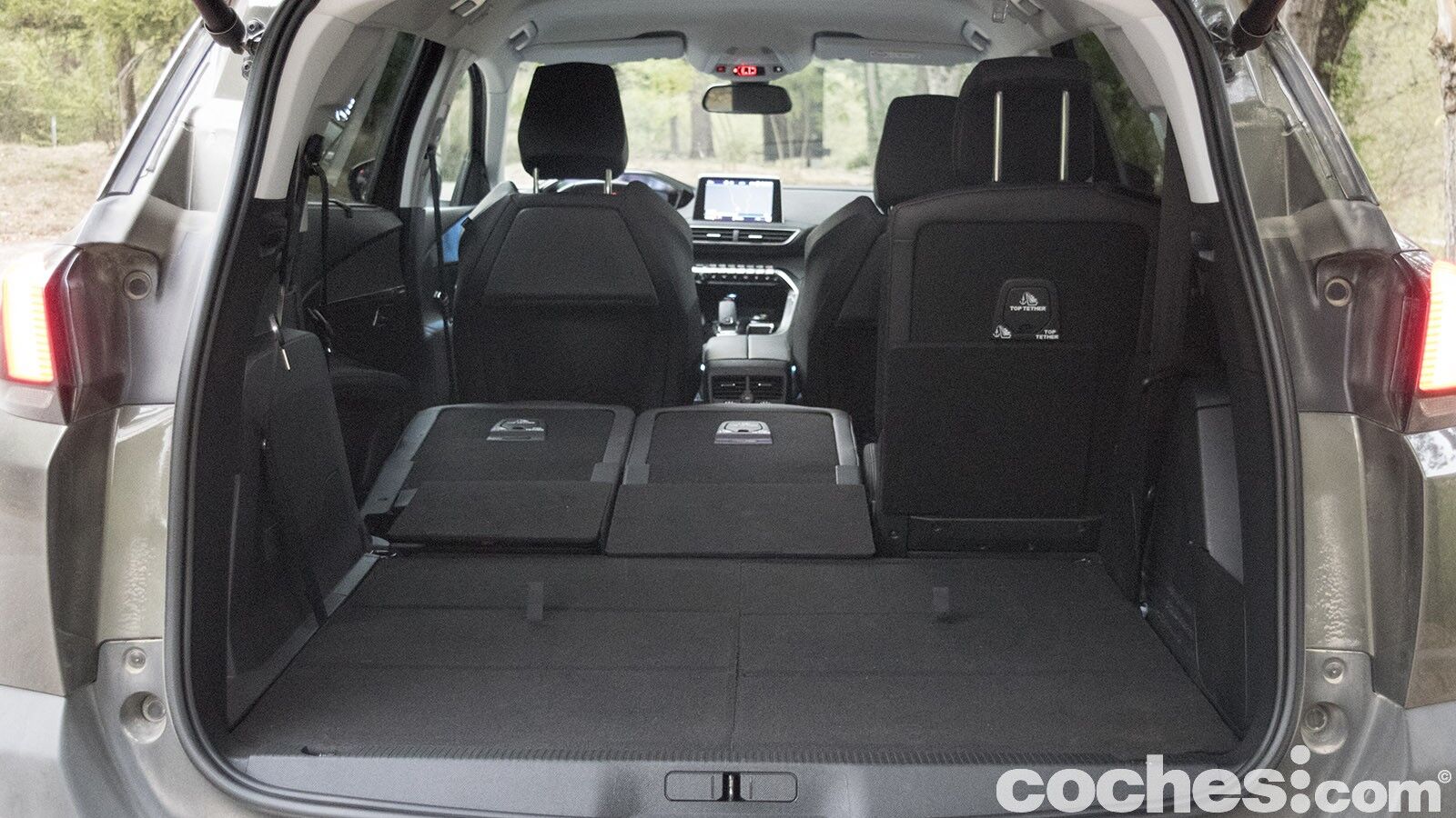 El maletero es otra de las virtudes del Peugeot 5008. Tiene una capacidad de 780 litros cuando se utilizan cinco plazas y se quitan los asientos de la tercera fila. Si decidimos tenerlos puestos hay que tener en cuenta que cada uno restará al maletero unos 40 litros. Si abatimos la segunda fila se alcanzan hasta 2.150 litros de capacidad. Cuando se utilizan las siete plazas cuenta con menos espacio, pero aún así podrán entrar dos maletas de viaje.