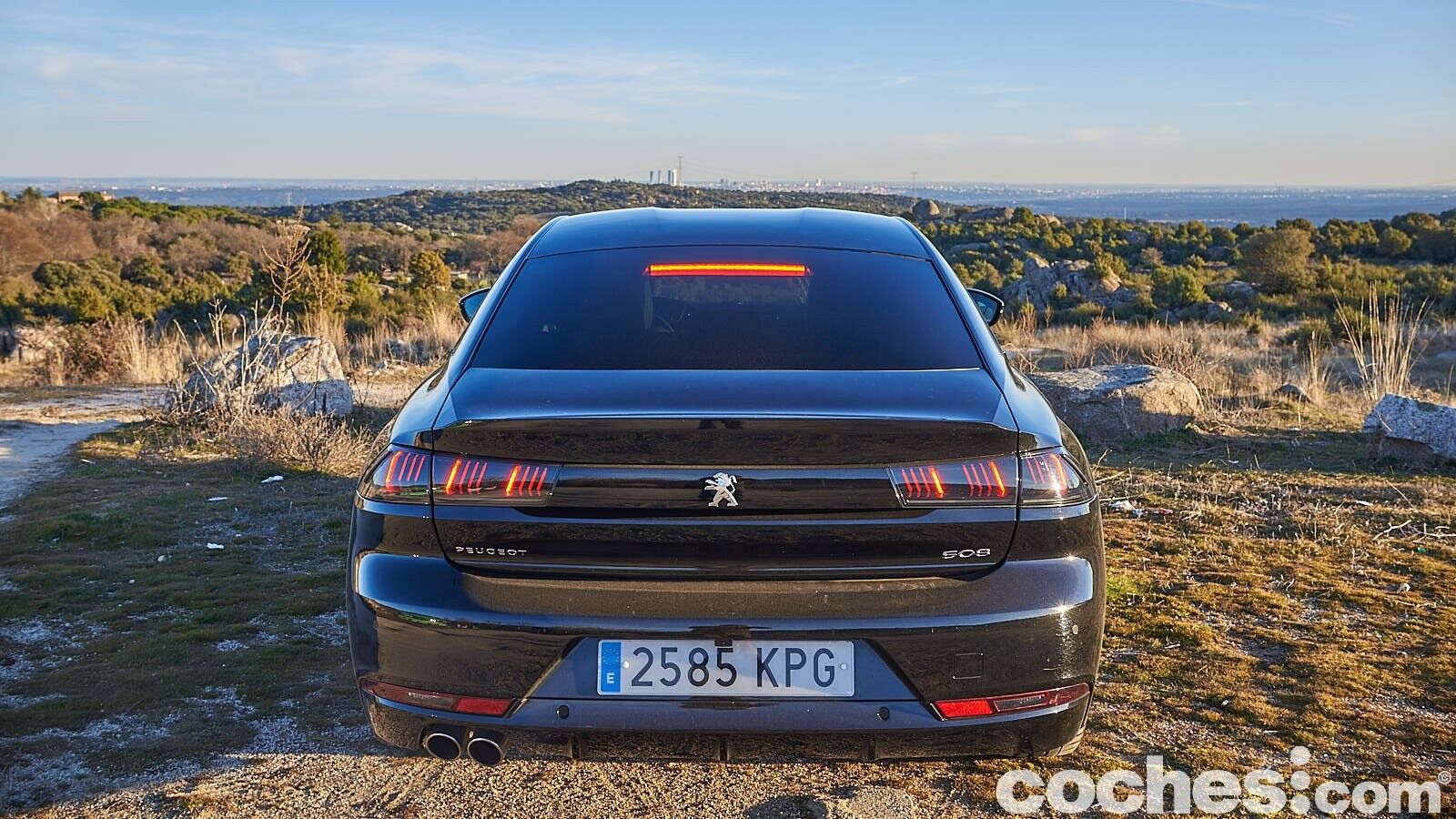 El trabajo bien realizado en la carrocería se remata con unas ópticas traseras ennegrecidas de tipo LED situadas a los extremos que se integran visualmente entre sí gracias a la inserción de plástico de la parte central, donde se sitúa la insignia de la marca. Al abrir el coche, los faros se iluminan del mismo modo que lo hacía KITT, el coche fantástico (similar al Audi A8L que probamos). Un detalle para los fanáticos de la serie de los 80 y que nos puede indicar a qué tipo de público está enfocado este nuevo 508 (¿35-40 años?).