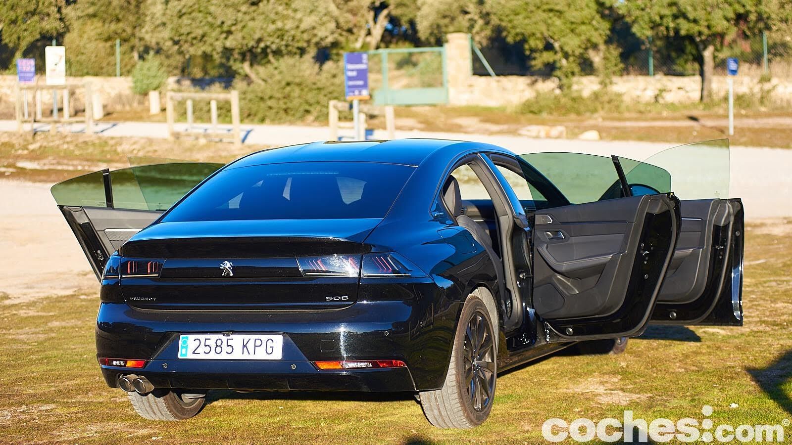 En nuestra unidad de prueba, el maletero contaba con apertura automática y manos libres (basta con pasar el pie por debajo del parachoques trasero). El botón para abrir el maletero se sitúa debajo de la moldura de plástico de la zaga. En la anterior generación este botón está disimulado en el “Cero” del emblema “508”.