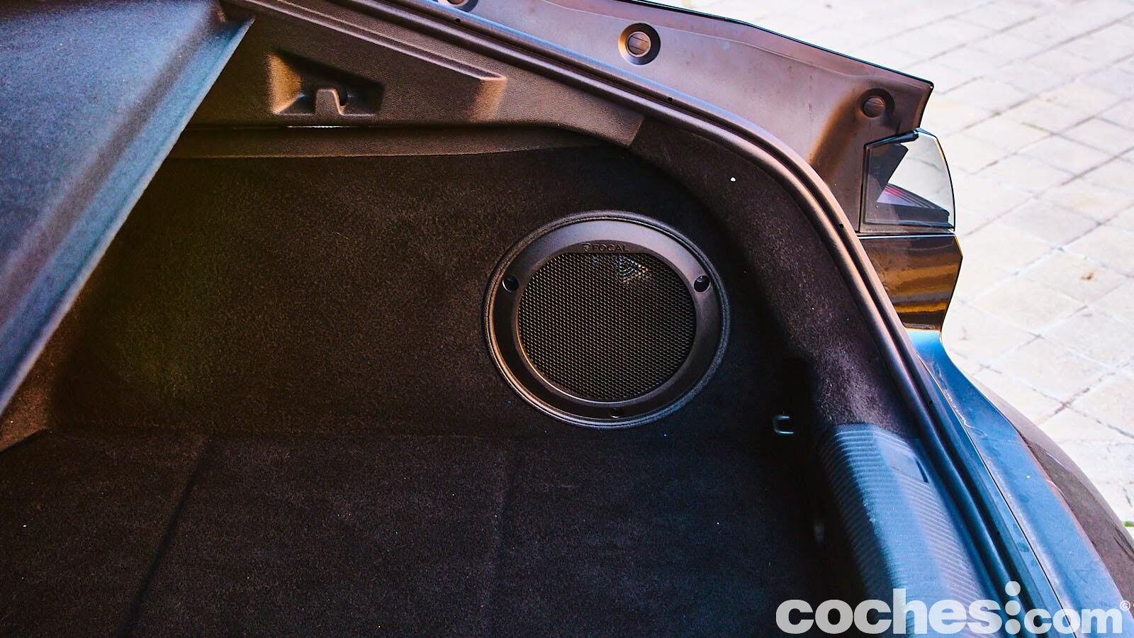 Es un maletero muy bien realizado, cubierto en moqueta. Dividido en dos pisos donde encontramos la rueda de repuesto de uso temporal. En el lado derecho se sitúa el altavoz de graves del equipo de audio FOCAL.