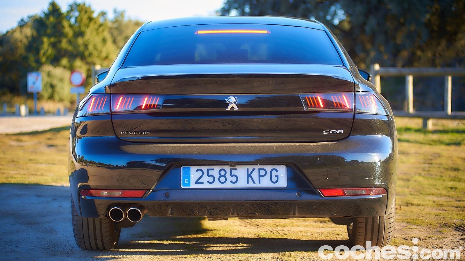 Uno de los puntos más sugestivos de este 508 es el diseño de la zaga. La caída del techo pronunciada, un final de carrocería afilado en forma de cola de pato y la elevación de la chapa del maletero, son su sello de identidad.