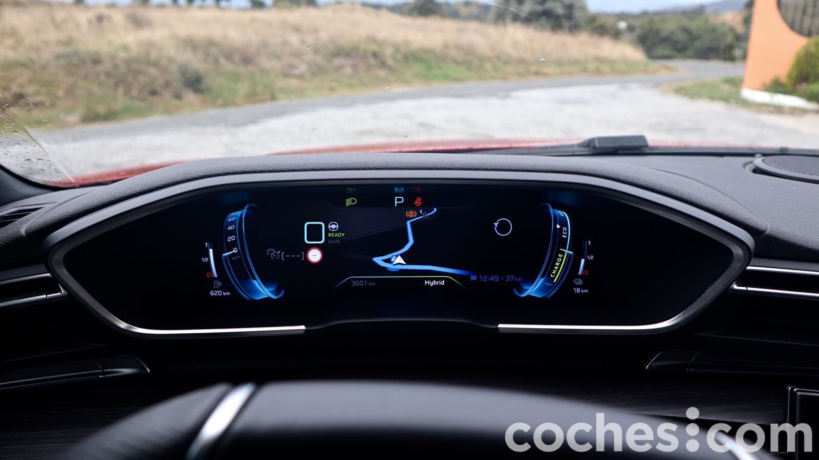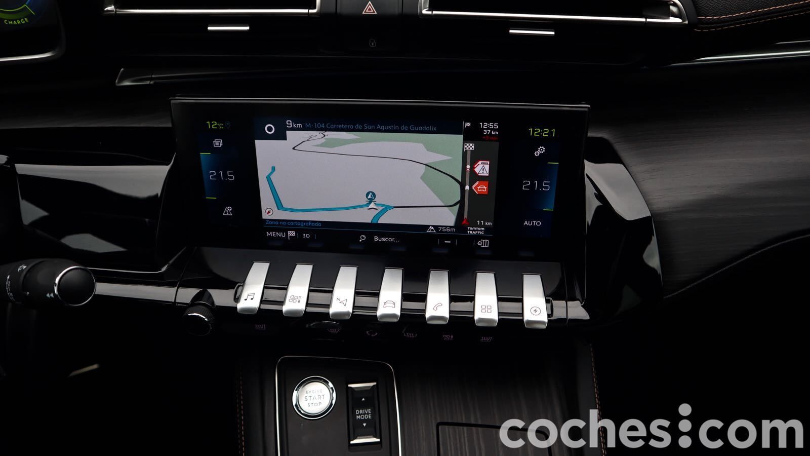 La ruta propuesta por la marca era principalmente por vías de circunvalación en Madrid, para luego salir unos cuántos kilómetros en autovía y completar una parte por autovía secundaria. Un recorrido en el que me movería la práctica totalidad del tiempo a 100 km/h o más... y gastaría la batería demasiado rápido. Como había comprobado en la prueba del Citroën C5 Aircross Hybrid que más o menos se cumplían, pasé a modo híbrido apenas entré en la M40.