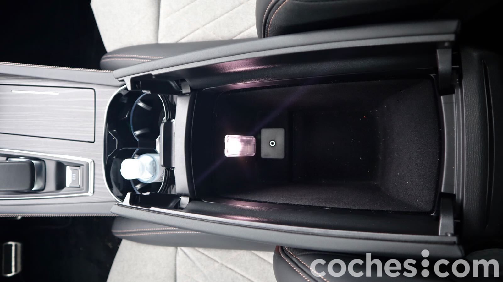 Justo a continuación, un par de reposabebidas y un reposabrazos que esconde un hueco con la toma Aux-in.