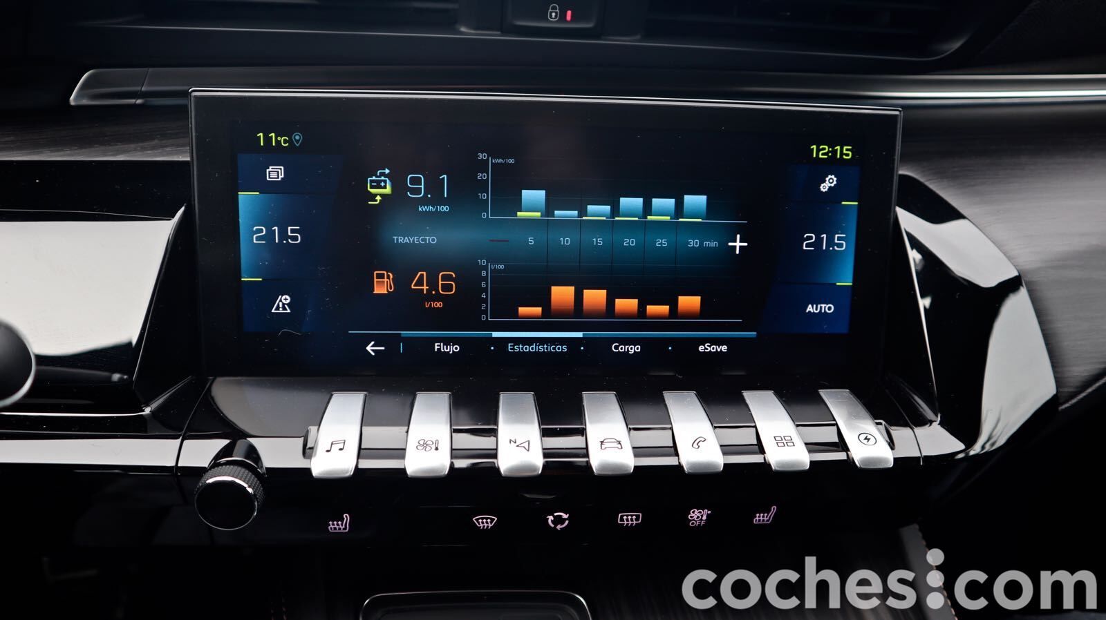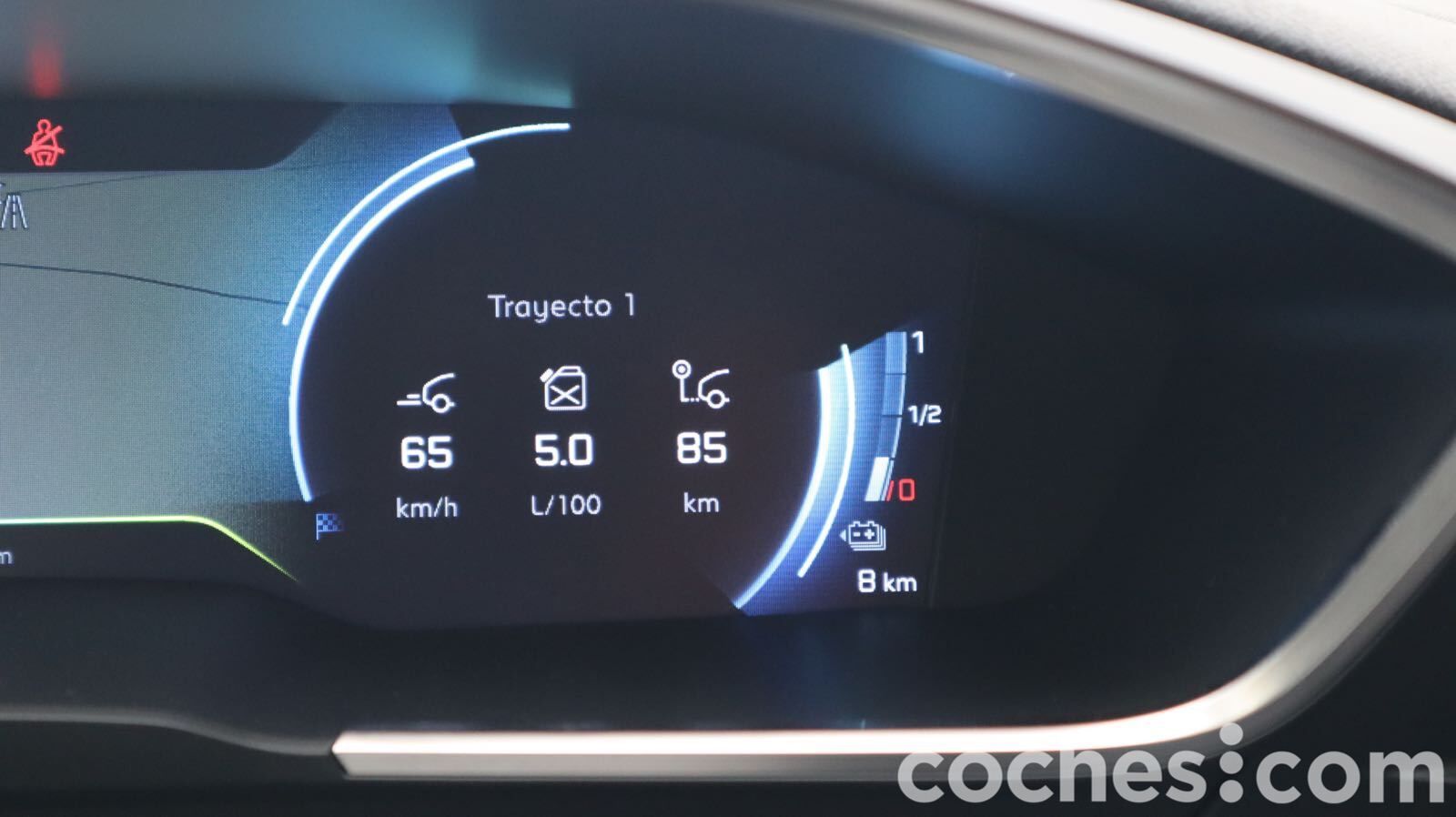 Sin tener demasiado tiempo para medir consumos en distintos escenarios, simplemente dar unas cifras. Recorrimos un tramos de 105 km, como te decíamos prácticamente todos en modo híbrido. Completamos el recorrido con un gasto de 5.0 l/100 km (no fuimos en absoluto despacio) y un cuatro de la batería disponible –indicaba 8 km de autonomía todavía). Puedes ver en el cuadro de instrumentos en todo momento niveles de autonomía y gasto, flujo de energía... y en la pantalla de 10 pulgadas estadísticas de consumo eléctrico y de carburante. Ahí pudimos ver cómo un 33% del recorrido se realizó sin emisiones.