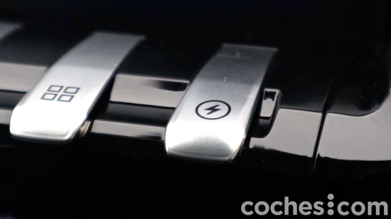 En el apartado práctico contamos en la consola central, al lado del selector del cambio, el botón de arranque y el mando de los modos de conducción, un hueco con tomas de 12 V. Bajo ella, un cargador inalámbrico y la toma USB, quizá demasiado escondida.