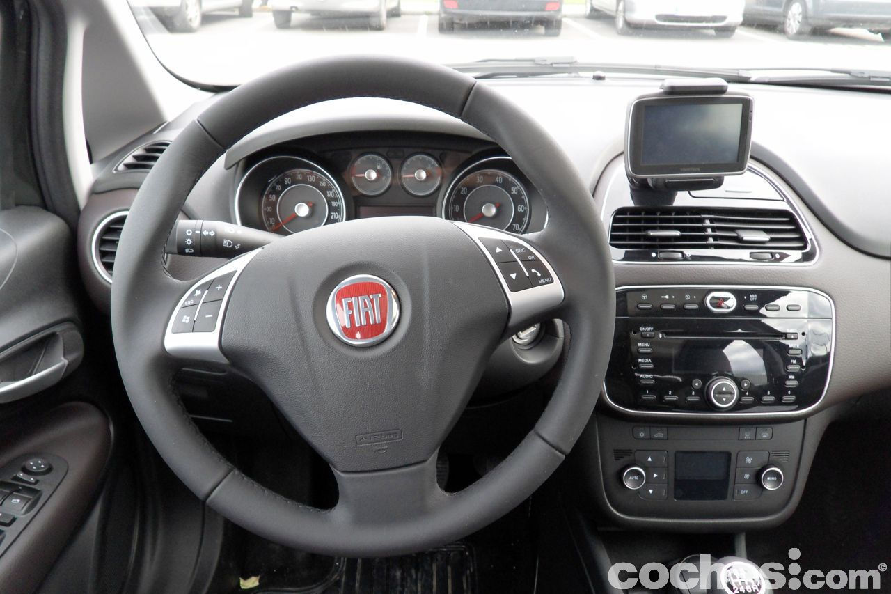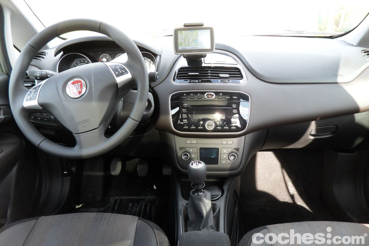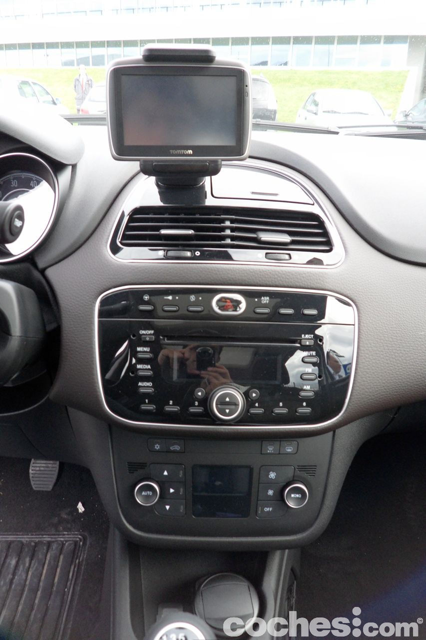 A bordo, materiales, remates y ajustes son de lo mejor que he visto en Fiat. He de reconocer que precisamente el acabado Emotive no es personalmente el que más me gustaba, comparándolo con el Dinamic y sobre todo el Sport, aunque esto de los acabados es cuestión de gustos y necesidades, por lo que no deja de ser una opinión perfectamente rebatible. Una cosa que llama mucho la atención es el alto grado de seguridad: siete airbags de serie: Se añade el airbag de rodilla. También hay muchos más compartimentos portaobjetos y la ergonomía de los asientos ha mejorado bastante respecto al Grande Punto.
