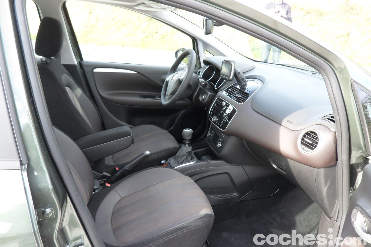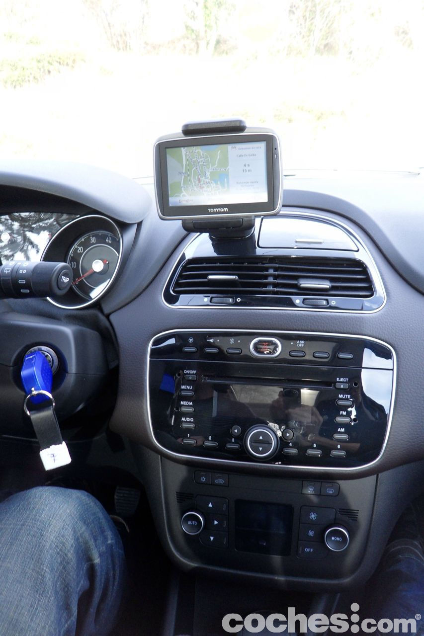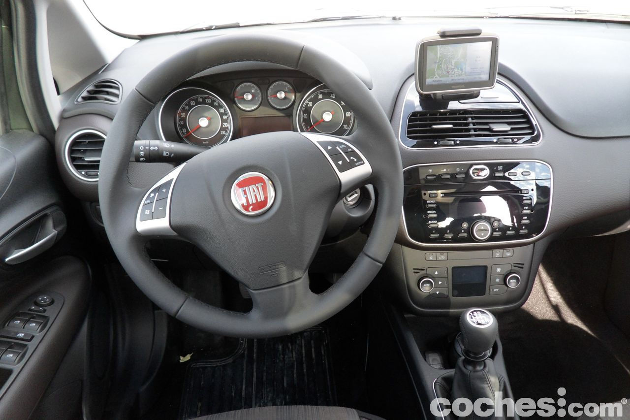 A bordo, materiales, remates y ajustes son de lo mejor que he visto en Fiat. He de reconocer que precisamente el acabado Emotive no es personalmente el que más me gustaba, comparándolo con el Dinamic y sobre todo el Sport, aunque esto de los acabados es cuestión de gustos y necesidades, por lo que no deja de ser una opinión perfectamente rebatible. Una cosa que llama mucho la atención es el alto grado de seguridad: siete airbags de serie: Se añade el airbag de rodilla. También hay muchos más compartimentos portaobjetos y la ergonomía de los asientos ha mejorado bastante respecto al Grande Punto.