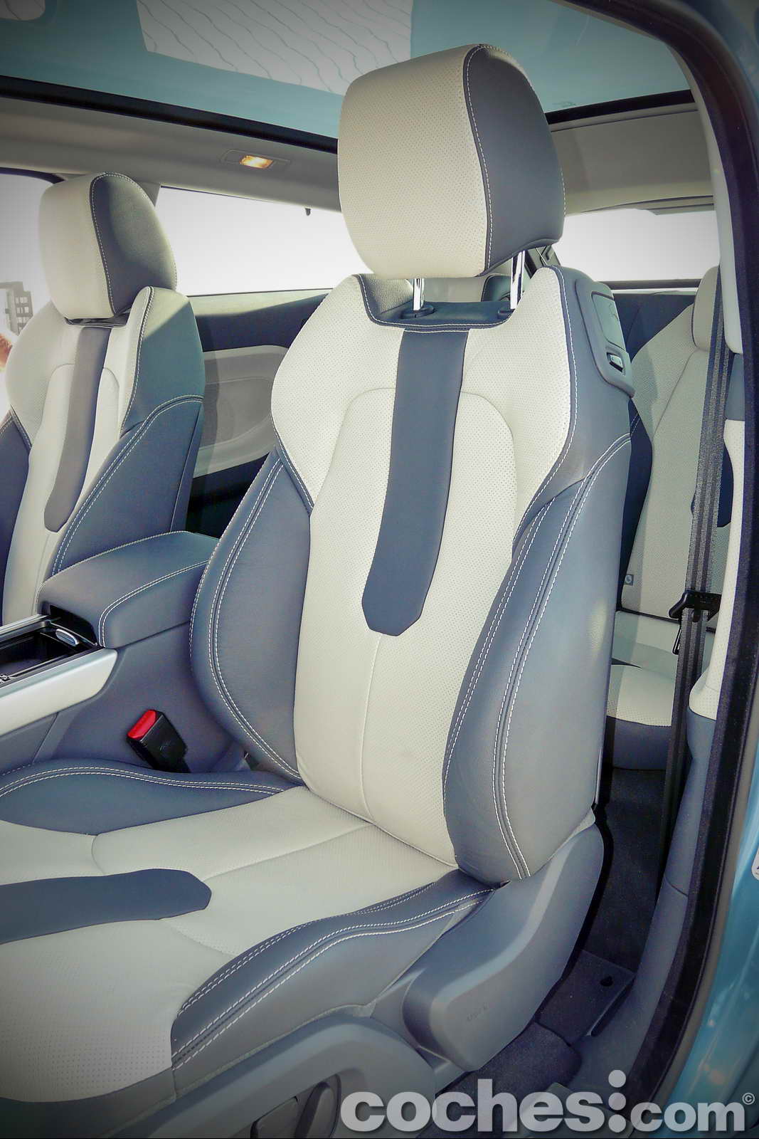 En cambio una vez superado este punto las plazas traseras tienen unas dimensiones más que aceptables, donde dos adultos podrán realizar largos viajes con suficientes dosis de comodidad (salvo que necesiten visitar con frecuencia los excusados de las gasolineras en ruta). En la configuración del modelo probado solamente dos pasajeros podían ocupar las plazas traseras con asientos muy marcados con resaltes laterales que evitan los deslizamientos en caso de que el conductor practique una conducción más alegre. Contrariamente a lo que pudiera parecer la sensación no es nada agobiante en estas plazas, pese al tamaño de las ventanillas, gracias a su amplitud interior y sobre todo a la posibilidad de desplegar el techo panorámico de cristal.