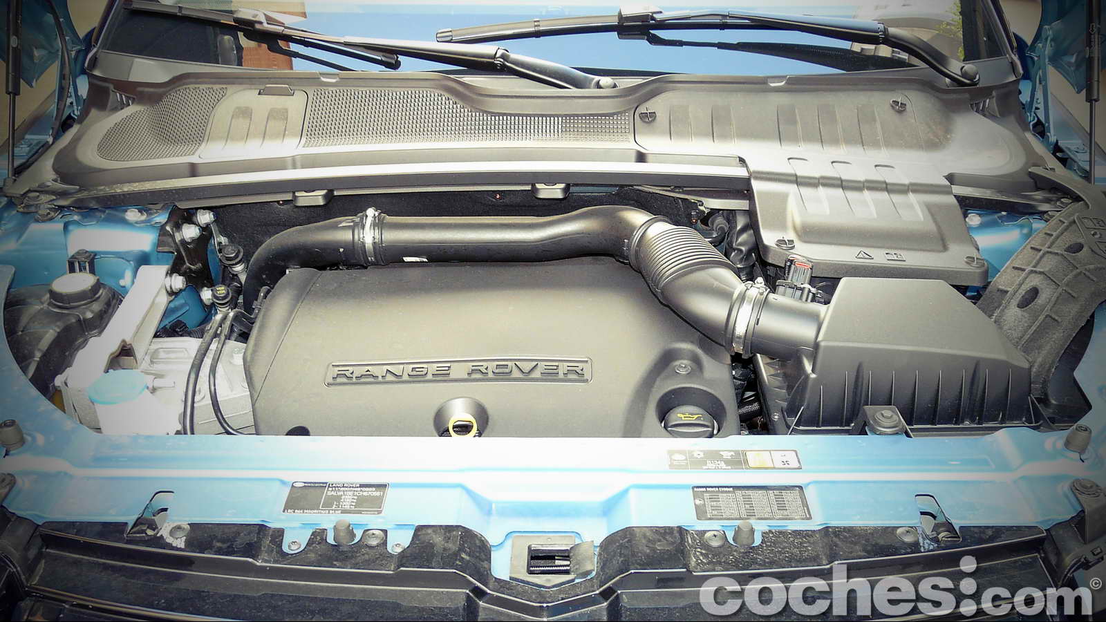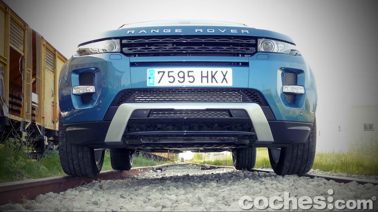 Todas estas ideas rondaban por mi cabeza en el trayecto que separaba las oficinas de Land Rover/Jaguar en Madrid del aparcamiento donde debía retirar la unidad asignada para esta prueba, hasta que el ansiado momento llegó y me encontré cara a cara con el modelo inglés. Alumbrado por los fluorescentes del garaje parecía encontrarse medio agazapado en la penumbra, entre varias unidades de sus hermanos de marca. Pero incluso en esas condiciones de iluminación llamaba poderosamente la atención, y más si cabe debido al color de la unidad de pruebas, un vistoso azul (denominado Mauritius Blue) que no hacía sino remarcar sus angulosas formas.