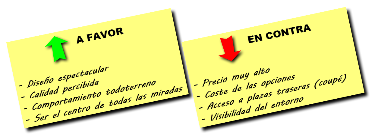 Si te gusta este tipo de vehículos y viajas sólo o en pareja indudablemente deberías escoger la versión de tres puertas. Si por el contrario tu familia se compone de tres o más miembros tu elección debería decantarse por el modelo de 5 puertas pues lo poquísimo que se pierde a nivel estético se gana indudablemente en practicidad. Por otro lado «limando» esos pequeños fallos de juventud, que una marca premium como Range Rover no se puede permitir, terminaría por convertirse en un producto absolutamente «entusiasmante» (si es que ya no lo es).