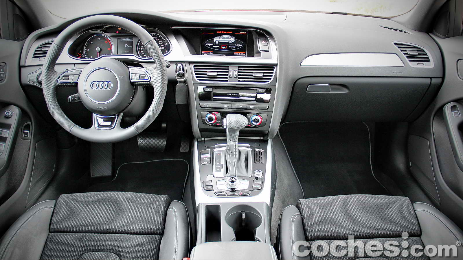 El interior de este Audi A4 destaca por su exquisita presentación, materiales empleados y ajuste de los mismos, justo al nivel que se espera en un vehículo elaborado en Ingolstadt.
