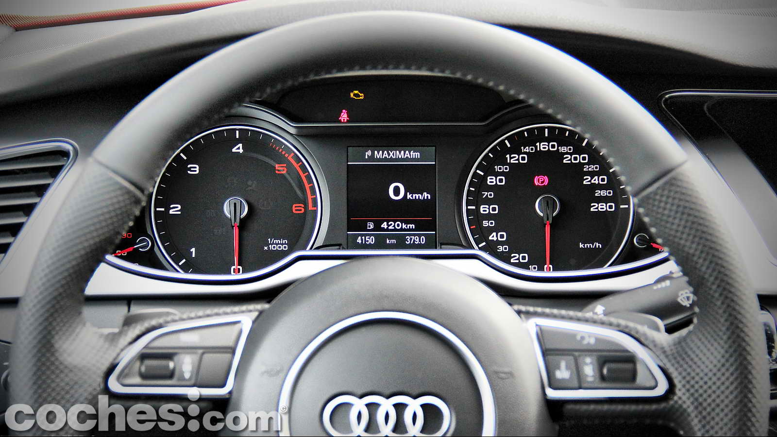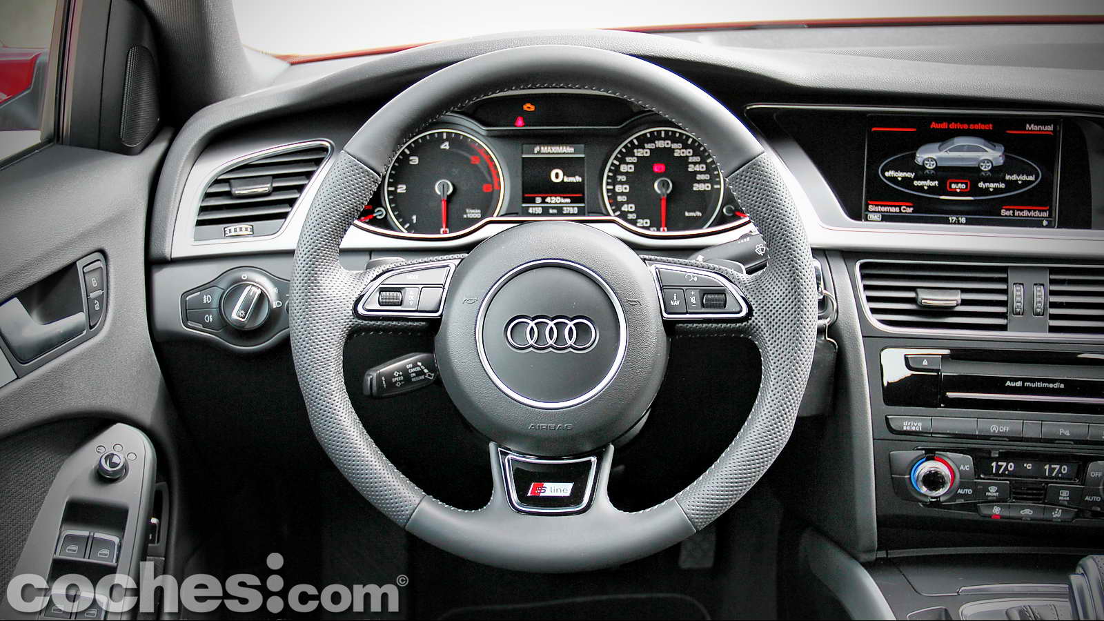 El volante multifunción, proveniente también de los accesorios S-Line, tiene el tamaño, espesor y tacto perfectos. Afortunadamente no nos topamos con una de esas unidades con la parte inferior achatada que resultan tan atractivas como poco prácticas, sobre todo a la hora de realizar maniobras urbanas o cuando recorremos un puerto de montaña.