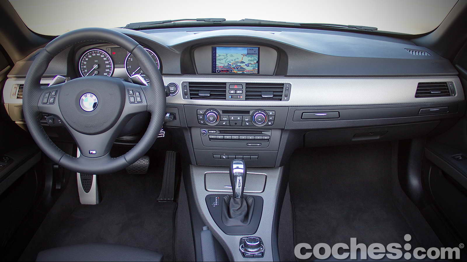 Siempre resulta un placer introducirse en el ambiente Premium que emana de un BMW, que alcanza cotas aún superiores si, como ya indicamos en el apartado anterior, se monta como es el caso el Paquete Deportivo M que, aparte de las características exteriores previamente descritas, incorpora en el interior unos excelentes asientos deportivos en cuero, multirregulables, que recogen perfectamente el cuerpo en zonas de curvas y, además, resultan tremendamente cómodos en viajes largos. También la adopción de este paquete opcional incluye un magnífico volante multifunción, más grueso, forrado en piel de agradable tacto que nos permite controlar de forma precisa la trayectoria de este modelo descapotable o accionar cómodamente las levas del cambio automático. Adicionalmente se montan unas estriberas en las puertas con el logotipo “M” y molduras interiores en acabado Aluminium Glacier oscuro, con unas terminaciones de primer orden, tanto en lo que está a la vista como en lo que no.