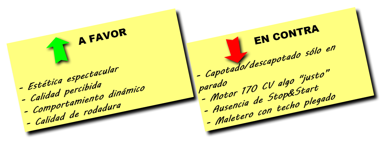 Y es que si su línea resulta atractiva con la capota rígida metálica puesta, de forma que muchos lo confunden con la versión coupé equivalente, cuando lo descapotamos saca a relucir todos sus encantos, su verdadera esencia. En tales circunstancias seremos, sin ningún género de dudas, el centro de atención de todos cuantos nos rodean, ya sea en el concurrido paseo marítimo de alguna de nuestras localidades costeras o recorriendo las avenidas del centro de una gran urbe como Madrid.