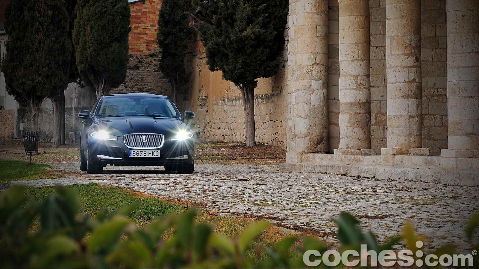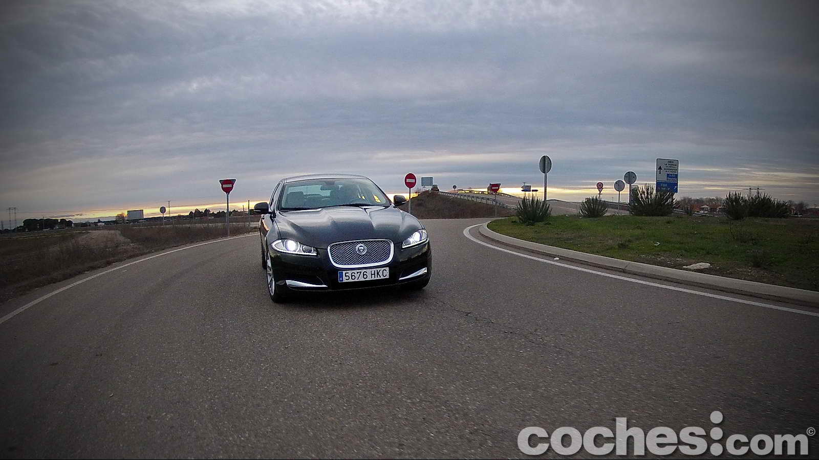 Basado en el tremendo potencial que os hemos descrito en el apartado anterior, este Jaguar XF se convierte en un excelente rodador, tanto de cortas como de largas distancias. Pero no sólo es el propulsor el “culpable” de tales prestaciones, mucho tiene que ver en ello la excelente transmisión automática, firmada por ZF, de 8 velocidades. Los cambios de marcha se llevan a cabo en unos imperceptibles 200 milisegundos, con lo que la progresión en aceleración es continua, sin ningún titubeo, y lo mismo ocurre en las reducciones. Además, gracias a las levas situadas detrás del volante, el conductor puede subir o bajar marchas de una en una, o varias a la vez, para encontrar inmediatamente aquella que se adapte mejor a las circunstancias de la conducción, ya sea ésta tipo “paseando a Miss Daisy” o se pretenda sacar la “quintaesencia” del motor en un tramo de curvas.