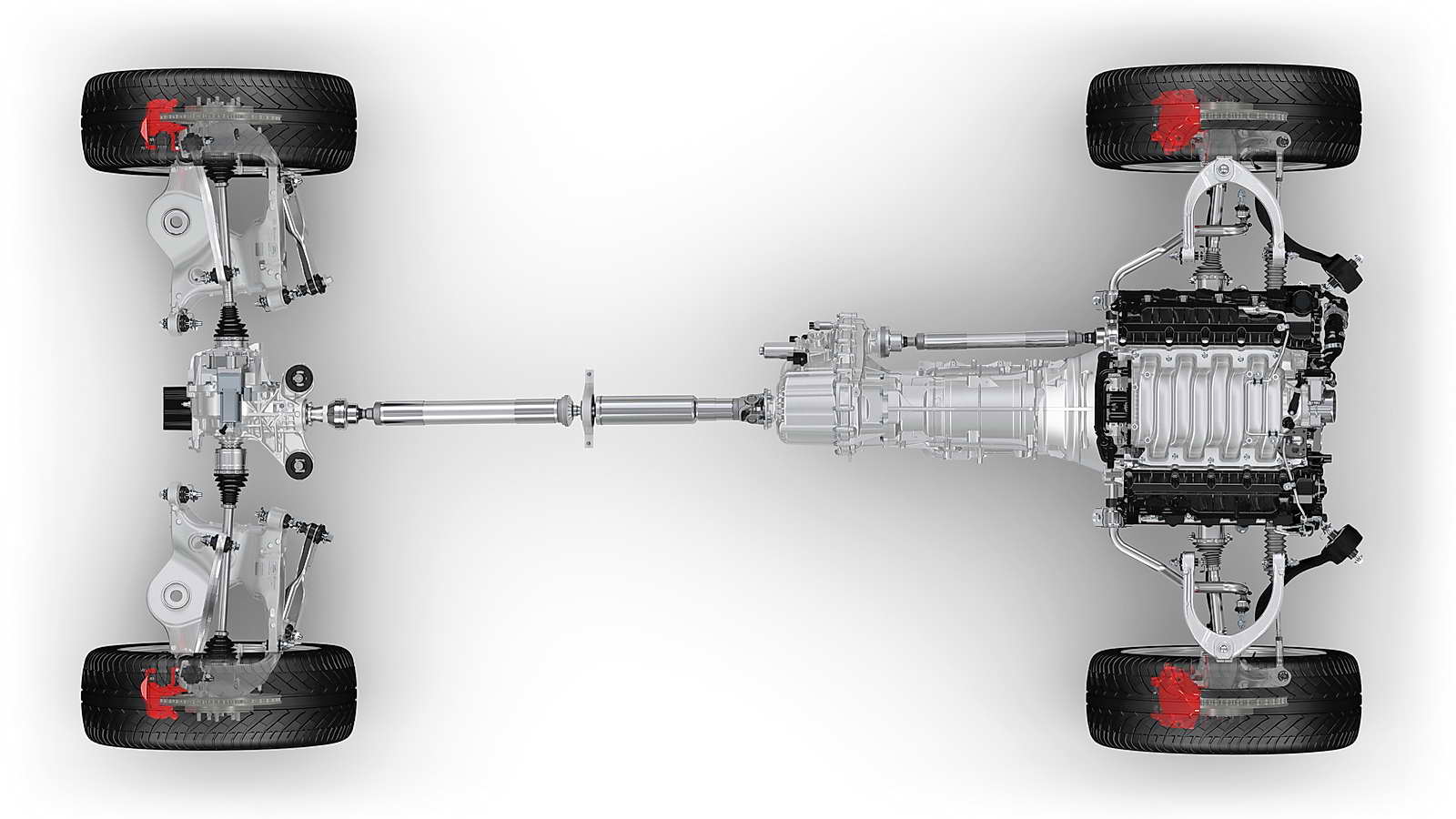 Nuestro sistema, más sencillo pero a la vez 18 kg más ligero, contaba con un diferencial central tipo Torsen que distribuía automáticamente el par al eje con mayor adherencia, pudiendo variar el reparto entre el delantero y el trasero, partiendo de unos valores iniciales del 42 y el 58% respectivamente.