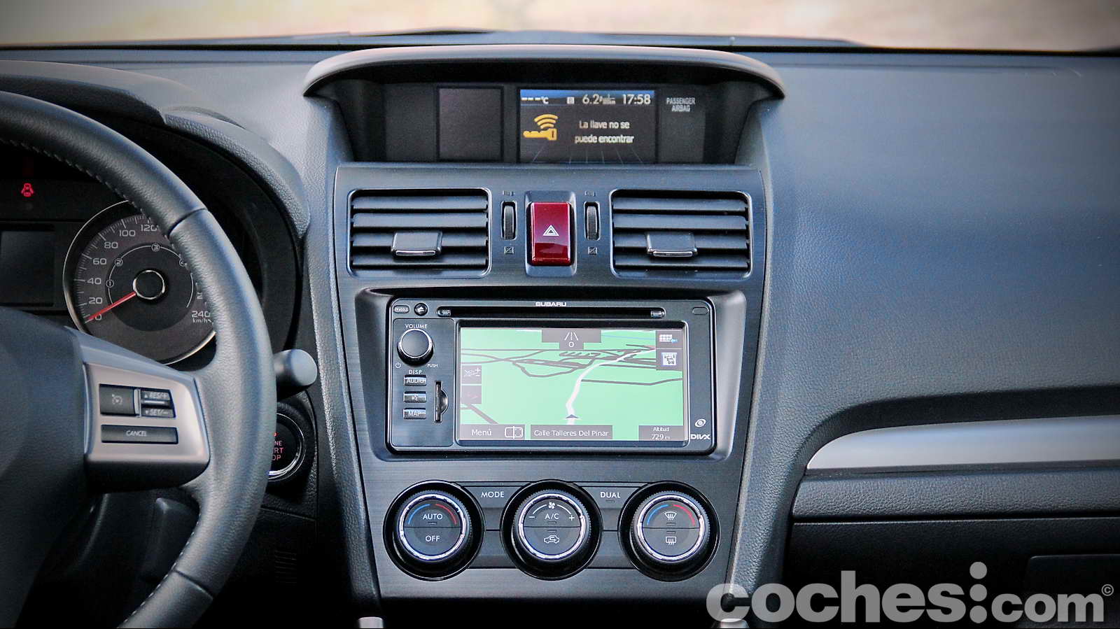 Si seguimos descendiendo nos topamos con la pantalla táctil de 7 pulgadas del sistema de navegación que también sirve para gestionar el conjunto de audio. Está dotada, además, con una función de reconocimiento de voz, muy útil, que se activa desde un botón en el volante, facilitando la introducción de órdenes precisas sin despistarnos en la conducción.