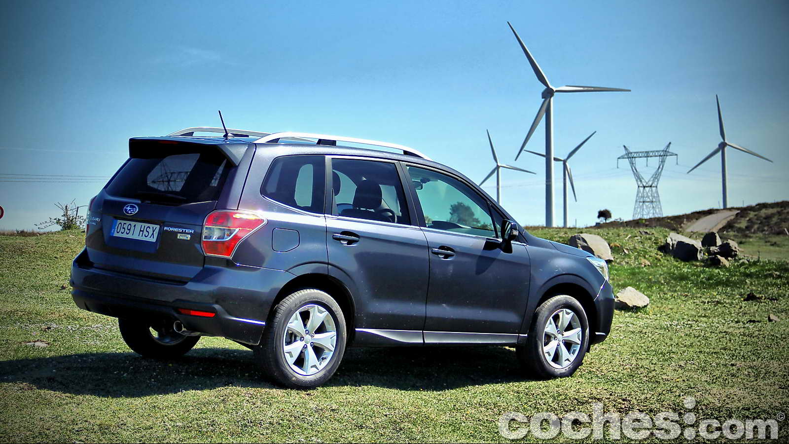 Si nos desplazamos alrededor del Forester contemplaremos ahora su vista lateral que destaca por las armoniosas líneas que comienzan en el prominente morro, para seguir con un parabrisas de generoso tamaño que se inclina hacia atrás, pero a la vez gana suficiente altura, lo que al final repercutirá en un espacio vertical interior muy generoso. El techo se prolonga casi plano, y en él se sitúan unas prácticas barras donde poder anclar un cofre u otro tipo de accesorios. Finaliza en un pequeño alerón que dota de una cierta dosis de dinamismo a esta zona.