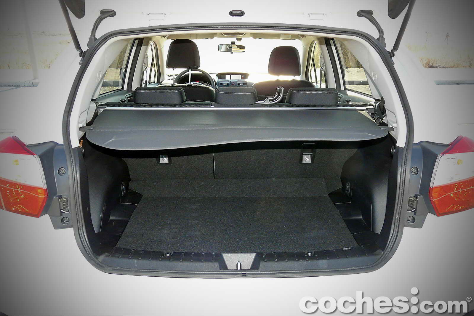 Para el final de esta descripción hemos dejado el maletero, que según las especificaciones técnicas cubica 380 litros si se equipa el kit antipinchazos (no os aventuréis nunca en el campo con él, por lo que pudiera suceder...). Sus dimensiones son correctas, sin más, pero su problema radica en la escasa altura libre, que condiciona enormemente la colocación de la impedimenta, y que resulta notoriamente mejorable si de viajar una familia de cuatro miembros se trata.