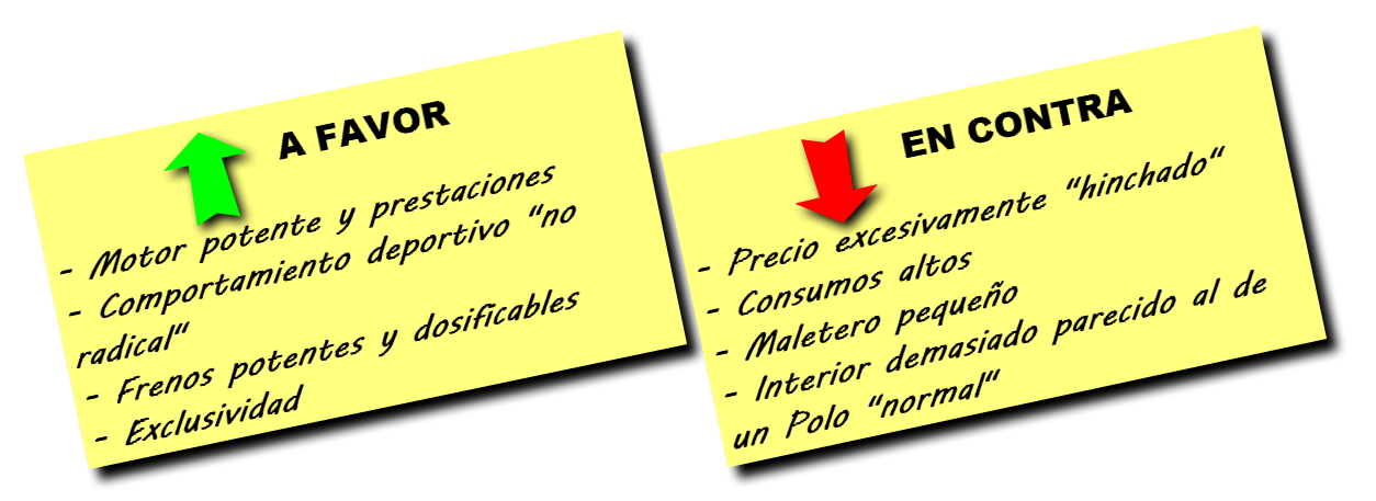En su debe encontramos como principal hándicap el precio, pues los casi 35.000 euros que Volkswagen pedía por él no se justifican ni siquiera tratándose de una edición limitada, y la diferencia de prestaciones frente a sus competidores más deportivos no es tan amplia como para que compense. Solamente si eres un auténtico forofo del Mundial de Rallies y quieres tener en tu garaje uno de estos especialísimos 2.500 ejemplares recomendaríamos su compra.