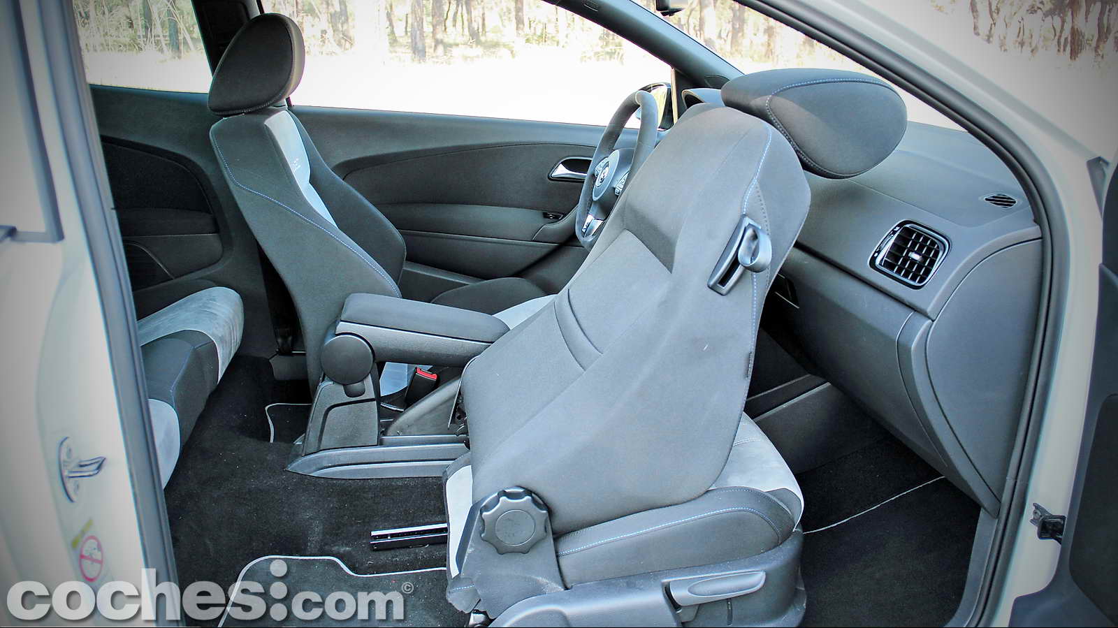 Los asientos delanteros no son exactamente lo que nos esperábamos encontrar en un vehículo con un pretendido aire de competición, tal y como nos pasó hace un par de semanas con el Nissan 370Z Nismo, aunque eso sí realizan su función a la perfección, sujetando el cuerpo de forma irreprochable hasta en los virajes más cerrados gracias a sus prominentes resaltes tanto en la zona lumbar como en las pantorrillas, aunque dejan excesivamente sueltos los hombros. Resultan a la vez bastante cómodos para realizar largas tiradas sin acabar necesitando un masajista. Como curiosidad destacar que estos asientos son calefactados, cosa que agradecerán los más frioleros.