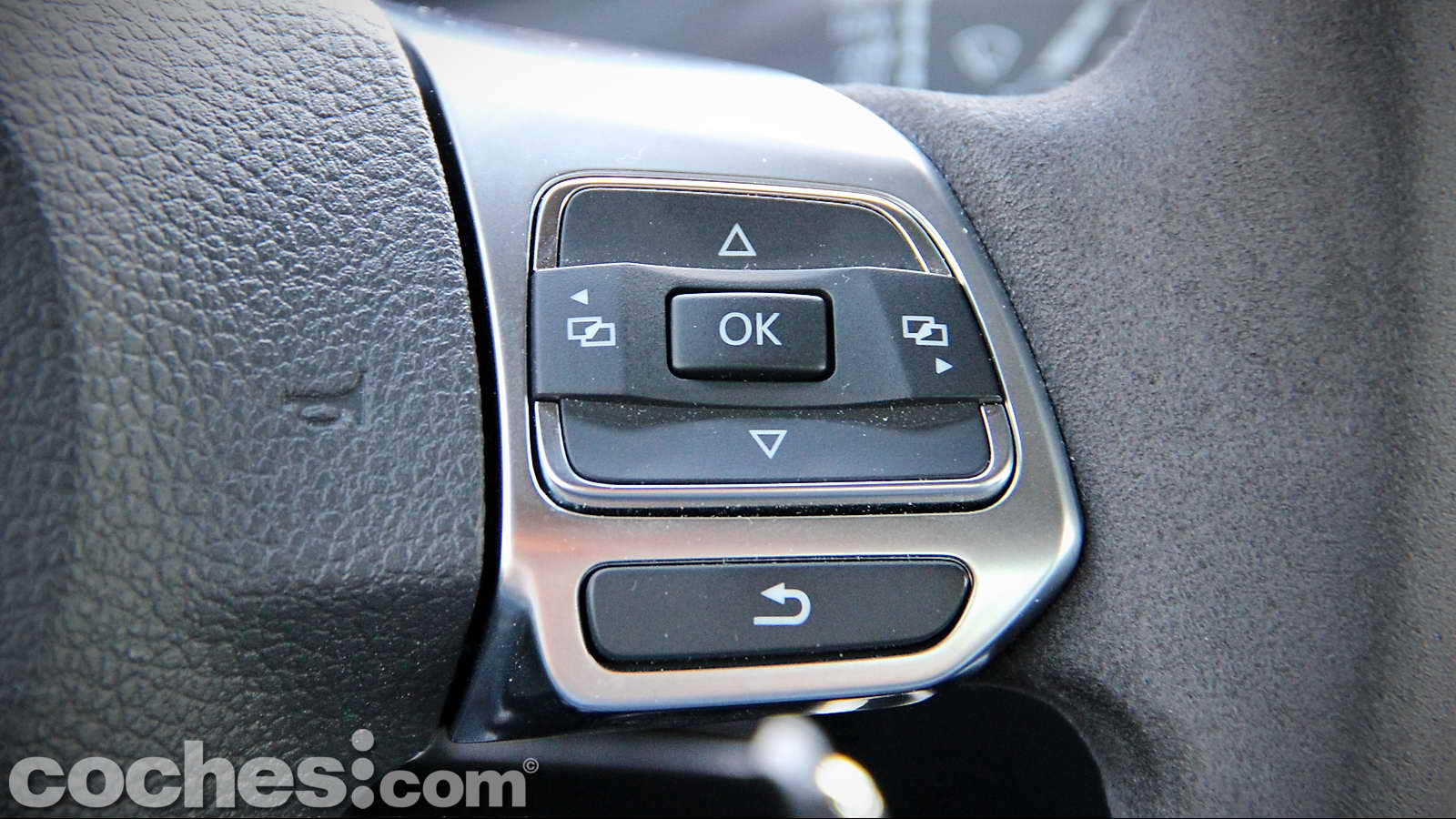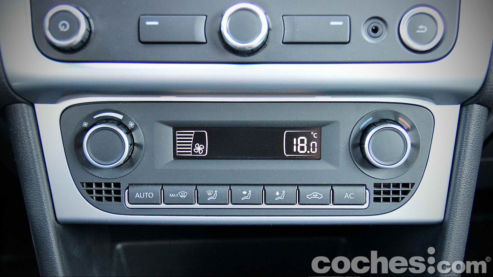 El salpicadero está formado por plásticos blandos de buena calidad, aunque resulta algo soso en su diseño, mientras que la consola central cuenta con un recubrimiento en plástico brillante, que simula metal, y le sirve para destacar frente a él. La distribución de esta zona es bastante peculiar, con los aireadores centrales situados en la parte superior, para encontrar inmediatamente debajo el botón que activa los intermitentes de emergencia, flanqueado a ambos lados por los mandos de regulación de los asientos calefactables, el avisador de desconexión del airbag del pasajero o el de desempañado de la ventana trasera, además del desconectador del ESP.