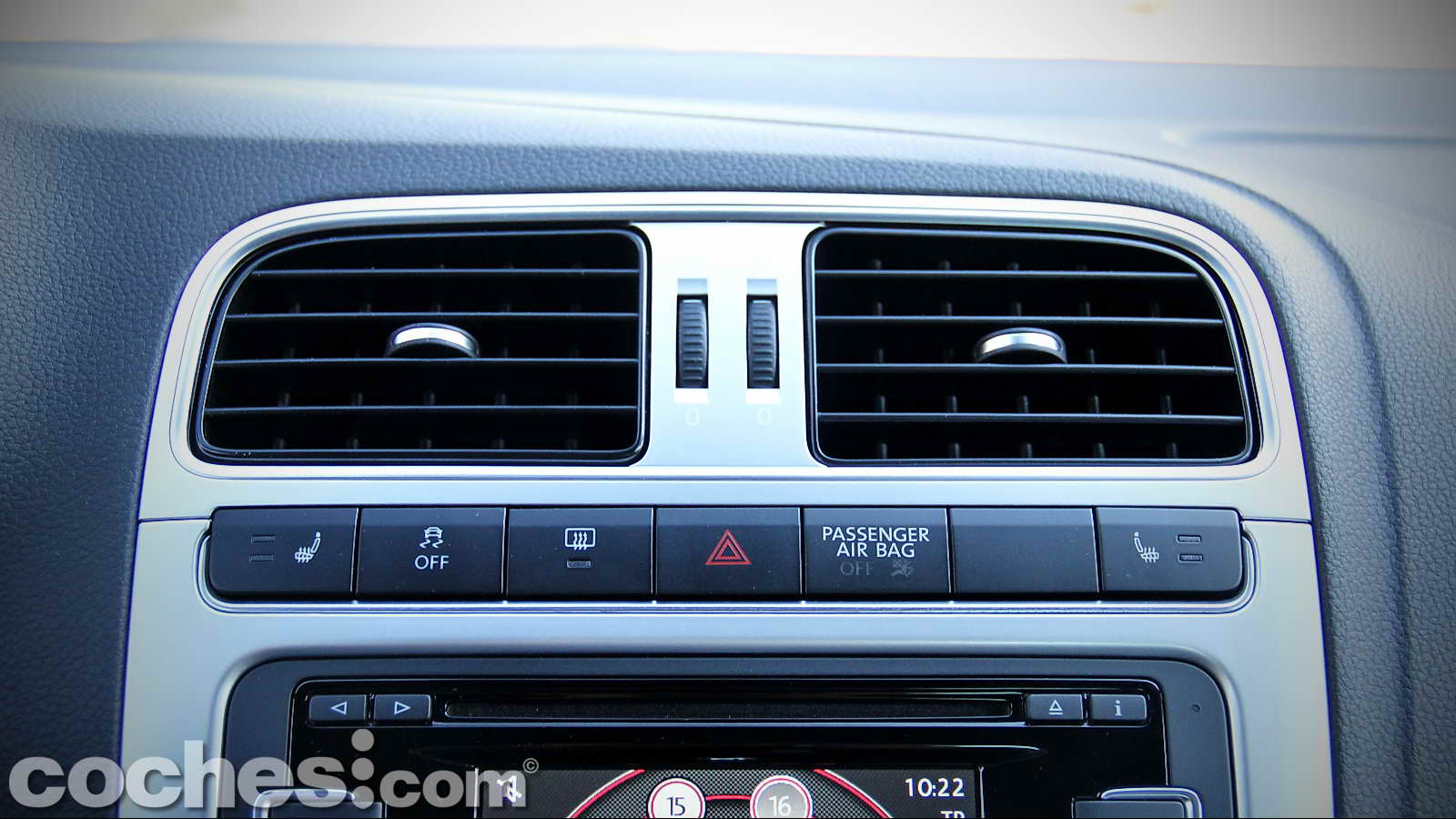 A continuación nos topamos con el equipo de climatización Climatronic, monozona, con un mando que regula la potencia del sistema y otro que nos sirve para controlar la temperatura, a pesar de su sencillez enfría rápidamente el pequeño habitáculo de este Polo incluso en los días más calurosos del verano.