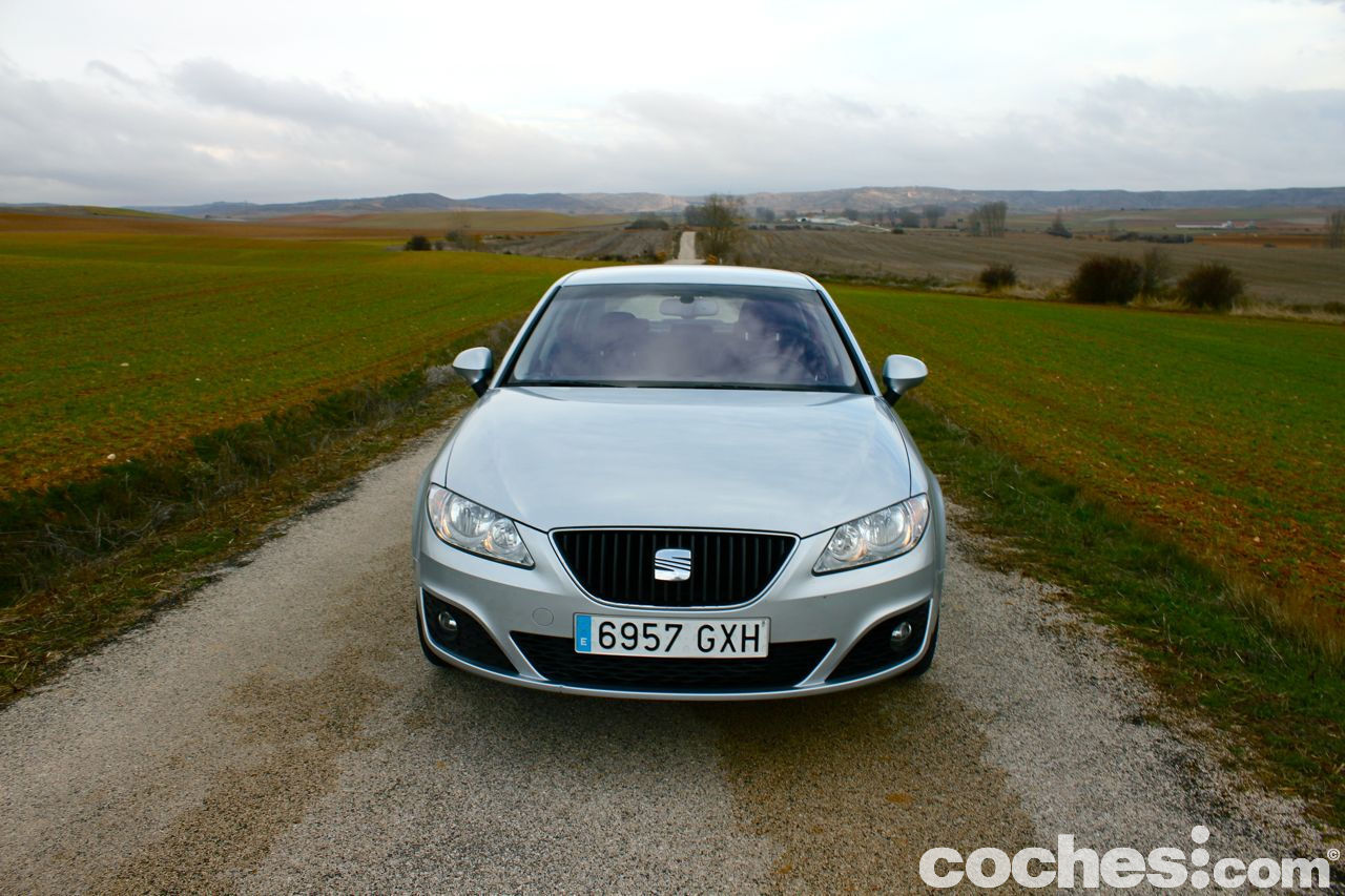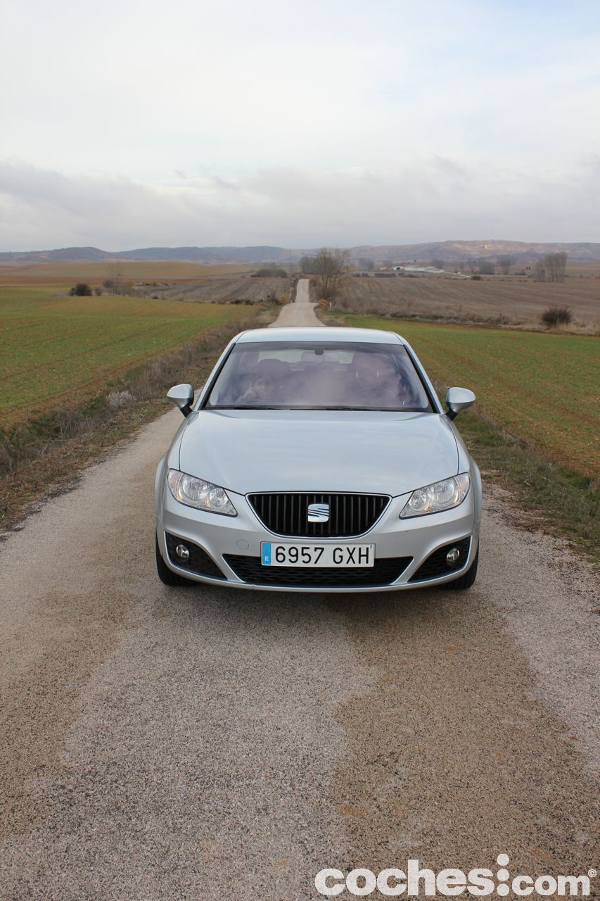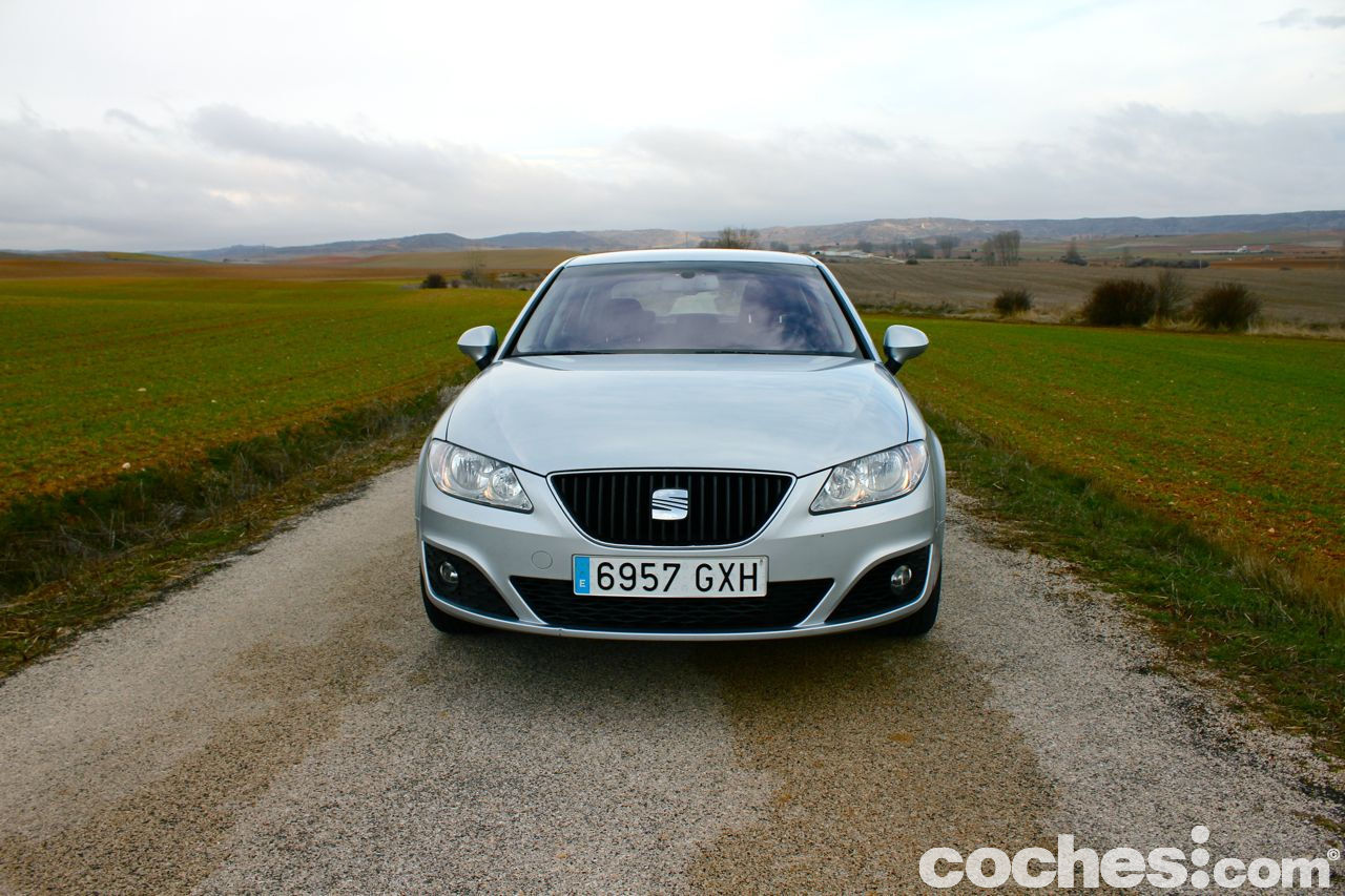 Vista frontal: Es el clásico frontal de Seat, con los faros muy agresivos y las líneas del parachoques y amplias tomas de aire, que le dan un aspecto más deportivo. El morro tiene la gran calandra típica de Seat, con la S del logo en medio presidiéndola. Los faros van en la línea del último Ibiza y el interior de las ópticas que incluyen xenon es diferente. Quedan muy elegante, pero hay que tener cuidado al aparcar ya que no hay molduras en los paragolpes.