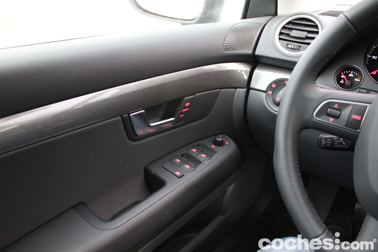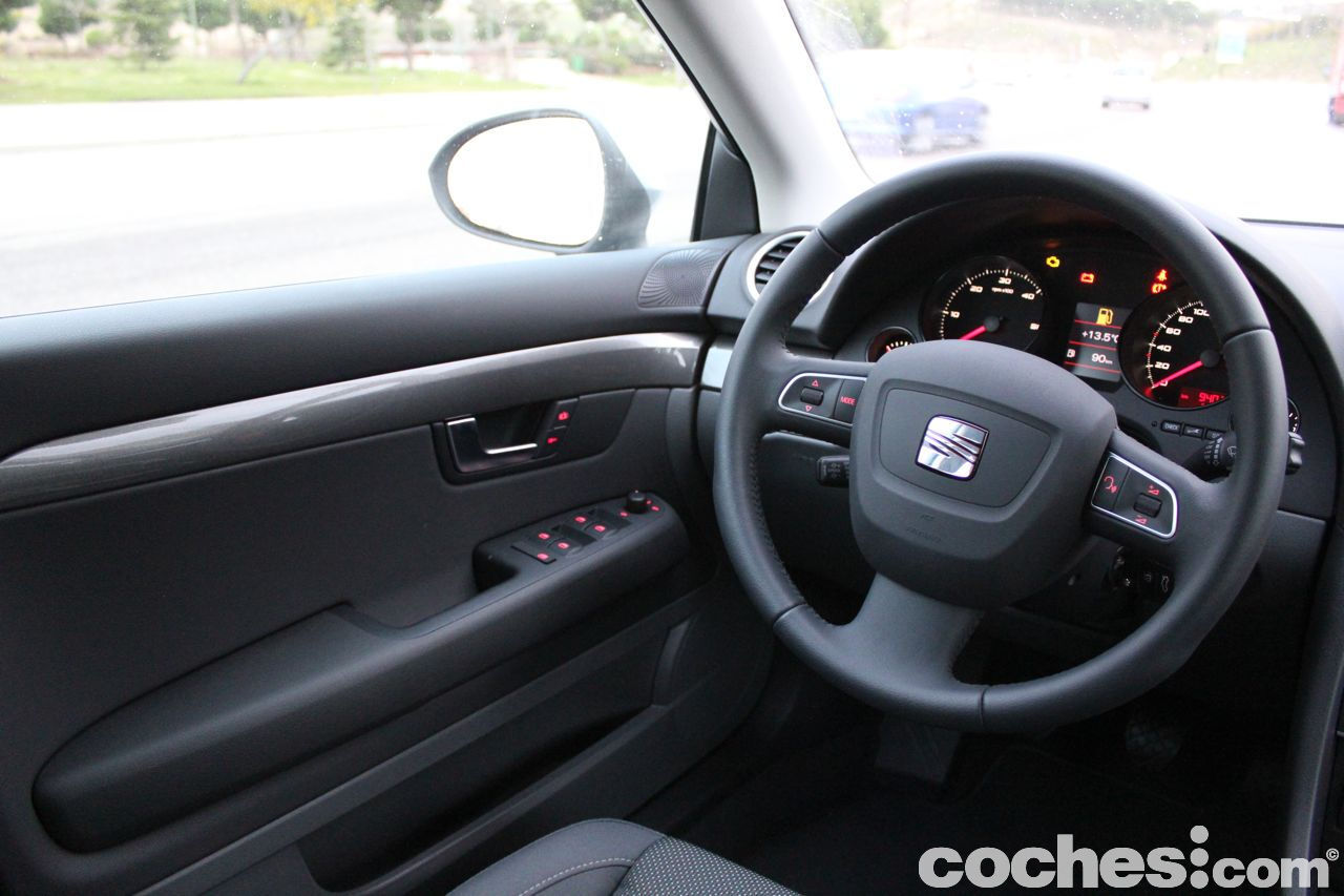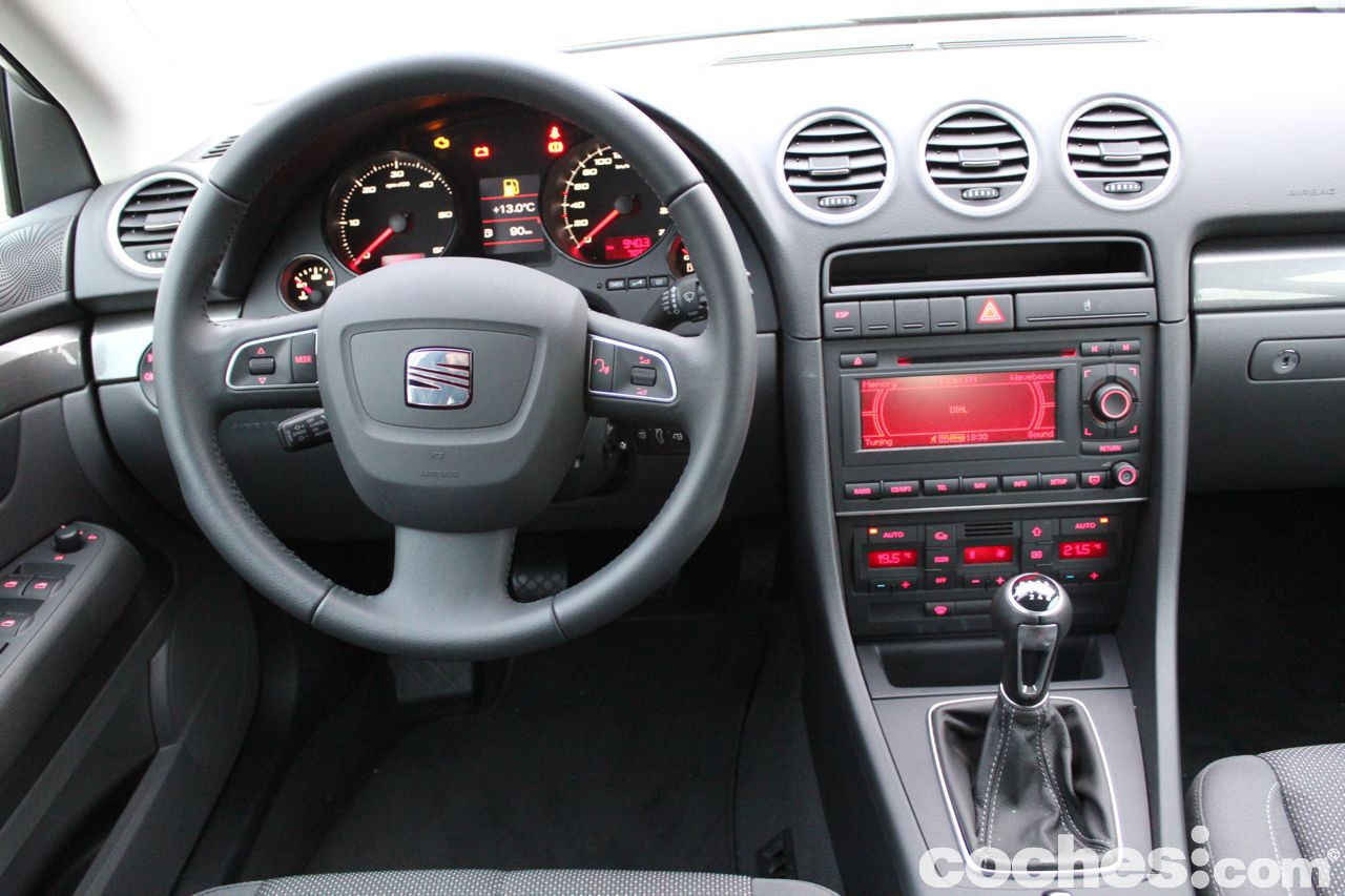 Abro la puerta, me siento y nada más cerrarla oigo ese sonido pesado propio de los coches de las marcas más caras del mercado. ¿Pero este coche no era un Seat? Las calidades que me rodean también son notables, así como todos los ajustes. Es entonces cuando miro el salpicadero... y resulta que es idéntico al de Audi A4 Cabrio: lo delatan las tres salidas de climatización sobre la consola central.