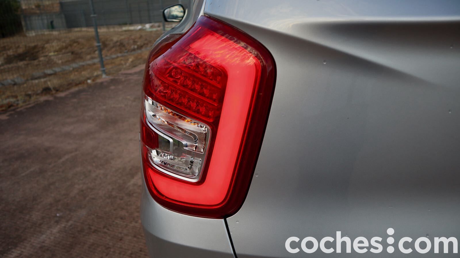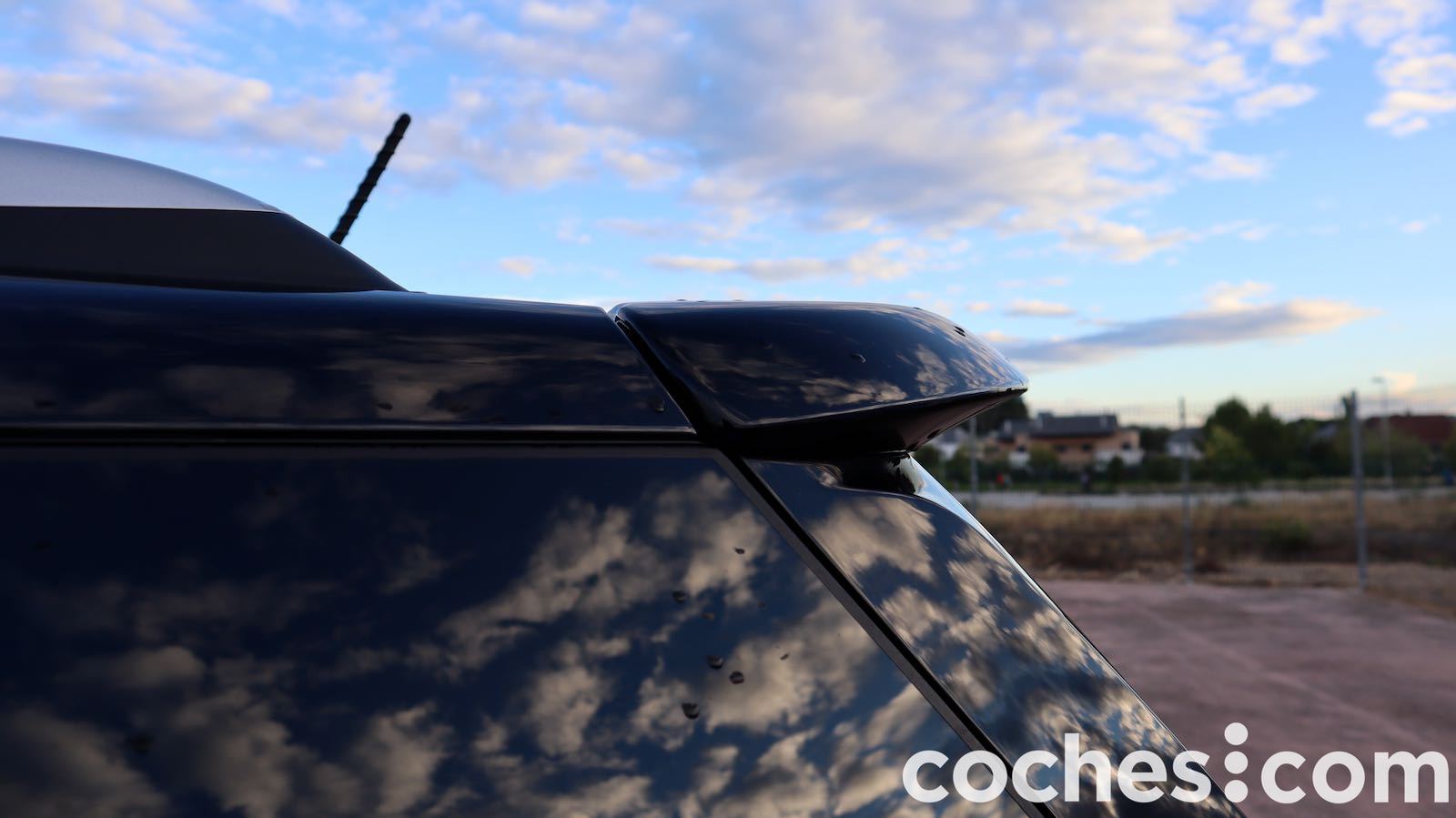 Parece un coche más grande de lo que realmente es, pues apenas mide 4.480 mm de longitud, por 1.810 mm de ancho y 1.660 mm de altura. En la trasera destaca el pilar C con una banda negra, a juego con el techo, que parece flotar con ese efecto óptico. Hay unos grandes grupos ópticos, que abrazan parte del lateral y la luneta trasera cuenta molduras en negro brillante