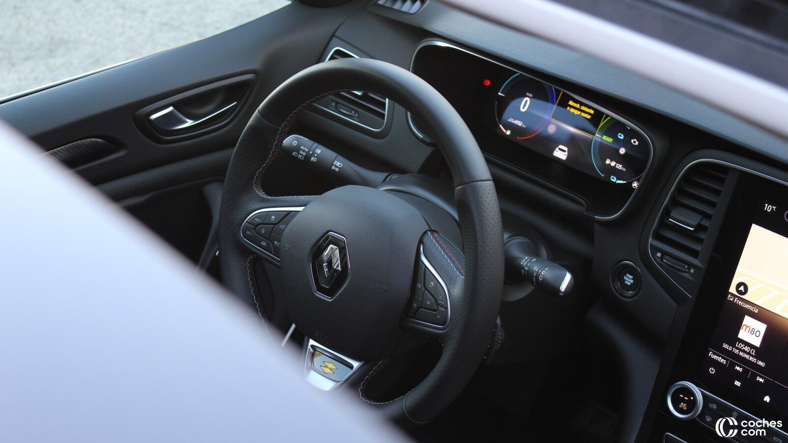 Un tono que también están presentes en los reposabrazos de las puertas (muy agradables) y en los asientos, que aquí son específicos del acabado R.S. Line. El reposacabezas queda integrado en el conjunto, y los pétalos laterales recogen bien el cuerpo salvo que sean de una complexión estrecha, como es el caso; eso deriva en que bailarás en él cuando tomes una curva algo rapidito. Estos son de tela y de ajuste manual en todos sus reglajes, con el logo de Renault Sport bordado en una etiqueta. Ese mismo logo también es visible en el volante.