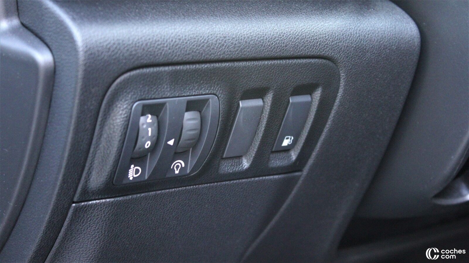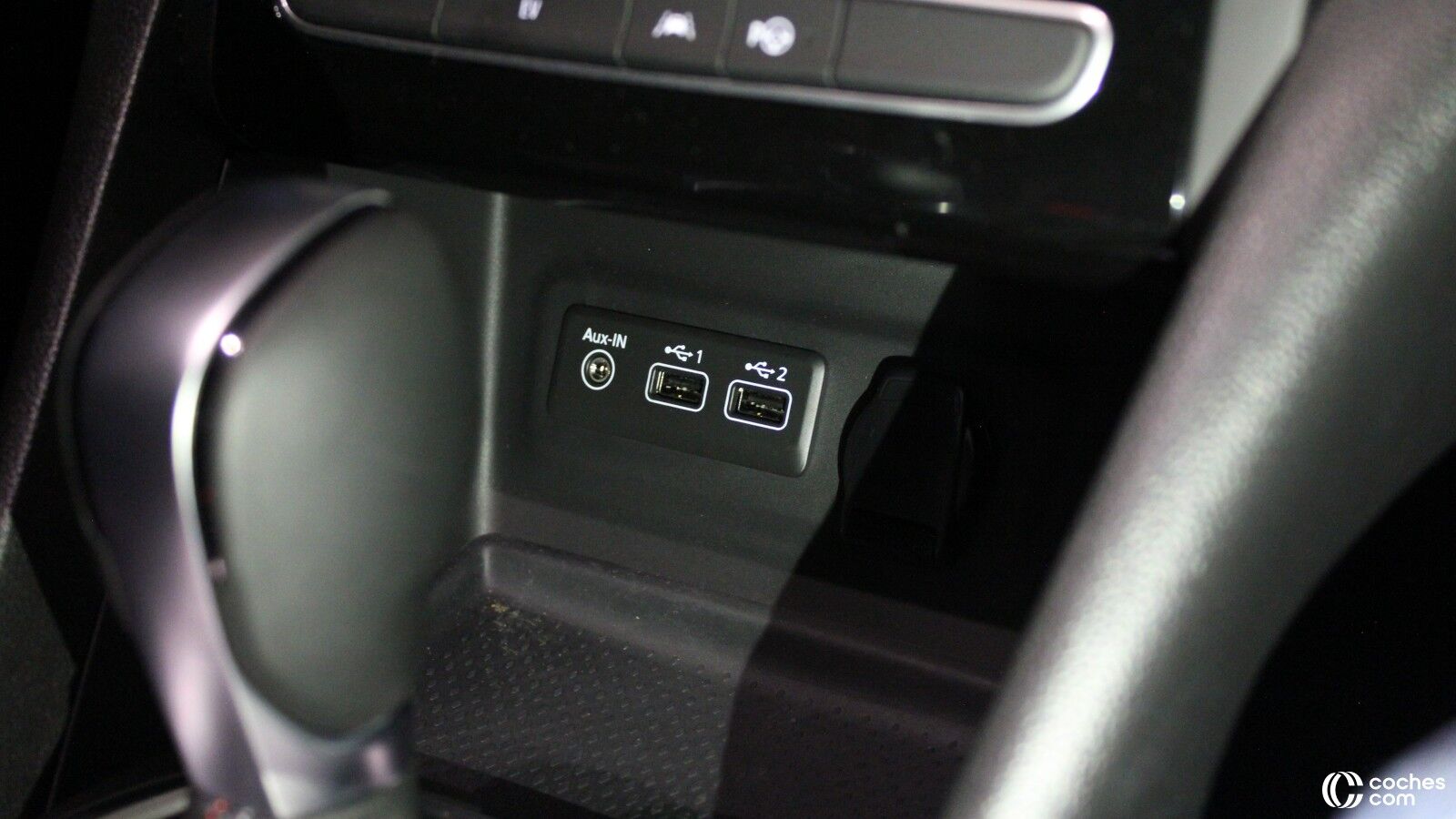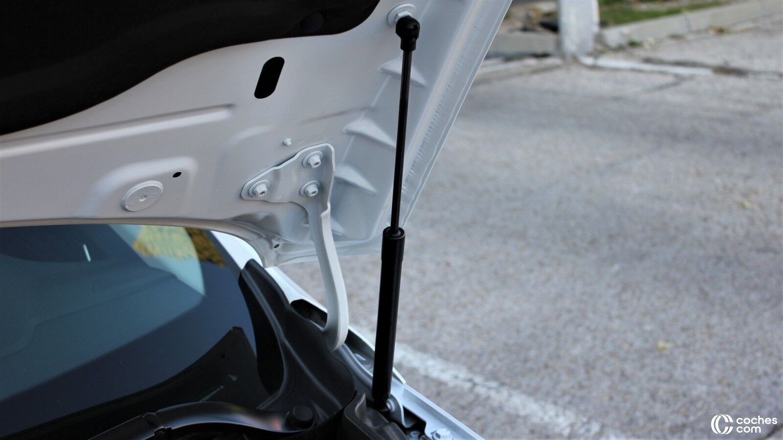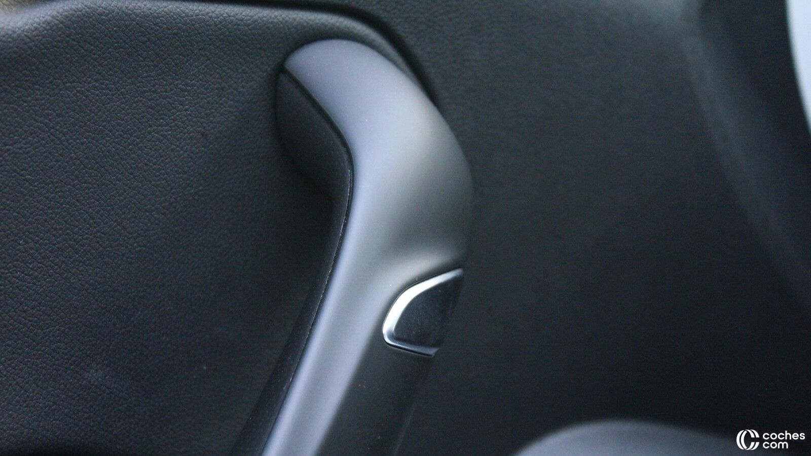 Por su parte, el kit de reparación de pinchazos va en un pequeño cajón lateral al que se accede quitando el tapizado. En total, estamos hablando de 261 litros de capacidad de almacenamiento útil, aunque tampoco se aleja mucho de lo que ofrece la competencia. Y el resto de los huecos a bordo no son excesivos, como recién he mencionado. Las bolsas de las puertas pueden alojar una botella de un litro, la guantera del copiloto la documentación y el chaleco reflectante, y en la consola central tenemos otra pequeña guantera y un espacio para las latas y el móvil.