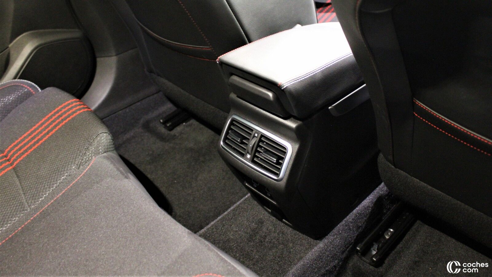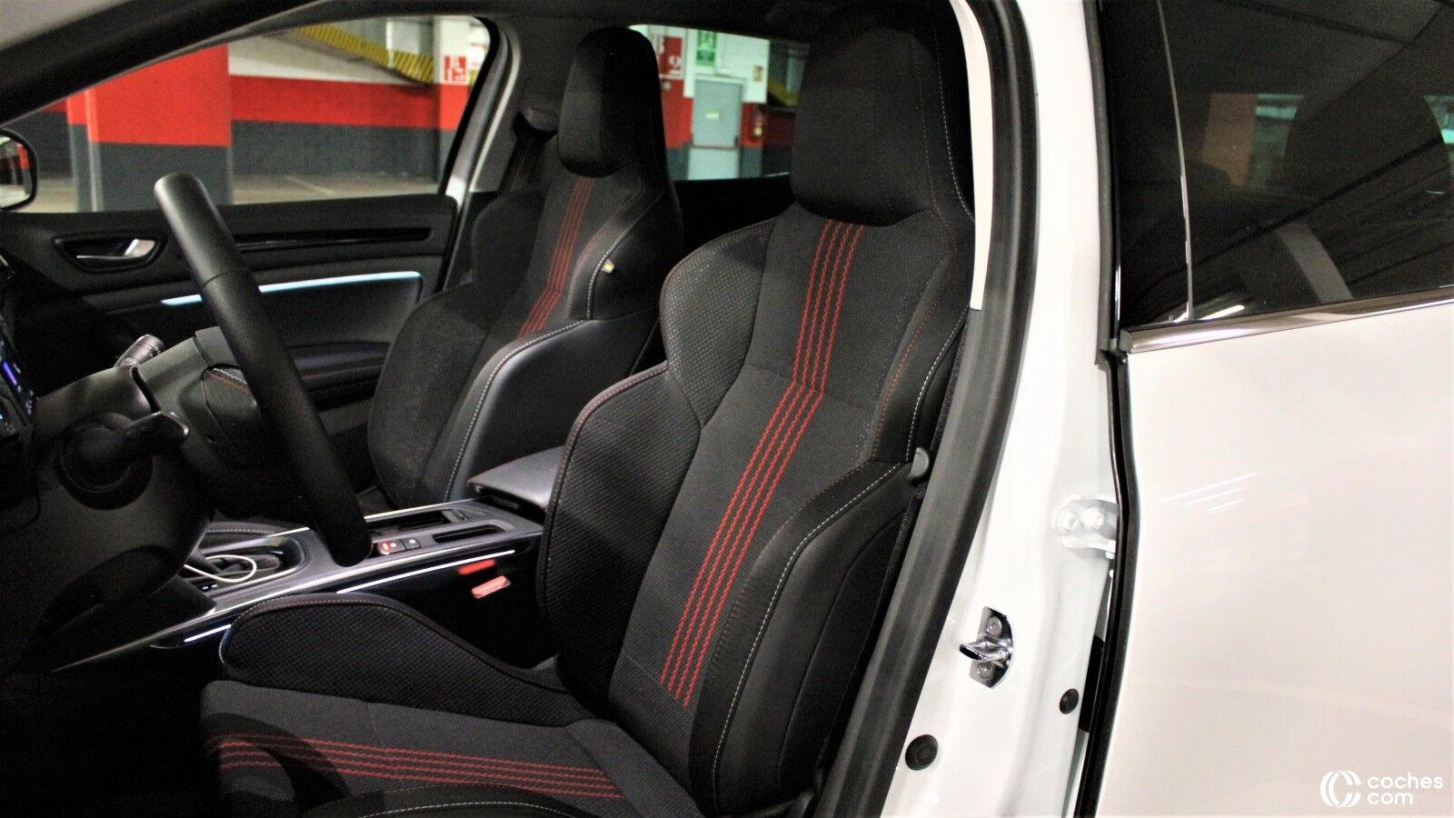 En general, el interior del Mégane está bien rematado y con unos ajustes correctos ¡Por fin un paso más cerca de sus competidores! Es espacioso para los pasajeros delanteros, mientras que los de la segunda fila no tendrán ningún problema siempre y cuando no superen el 1,90 m y no sean tres personas las que viajen. ¿Qué echamos en falta? A nivel tecnológico, una pantalla con mejor capacidad sensitiva y una base de carga inalámbrica, algún que otro detalle más pulido [una al forro del techo y los tiradores de las puertas] o algún hueco portaobjetos más amplio.