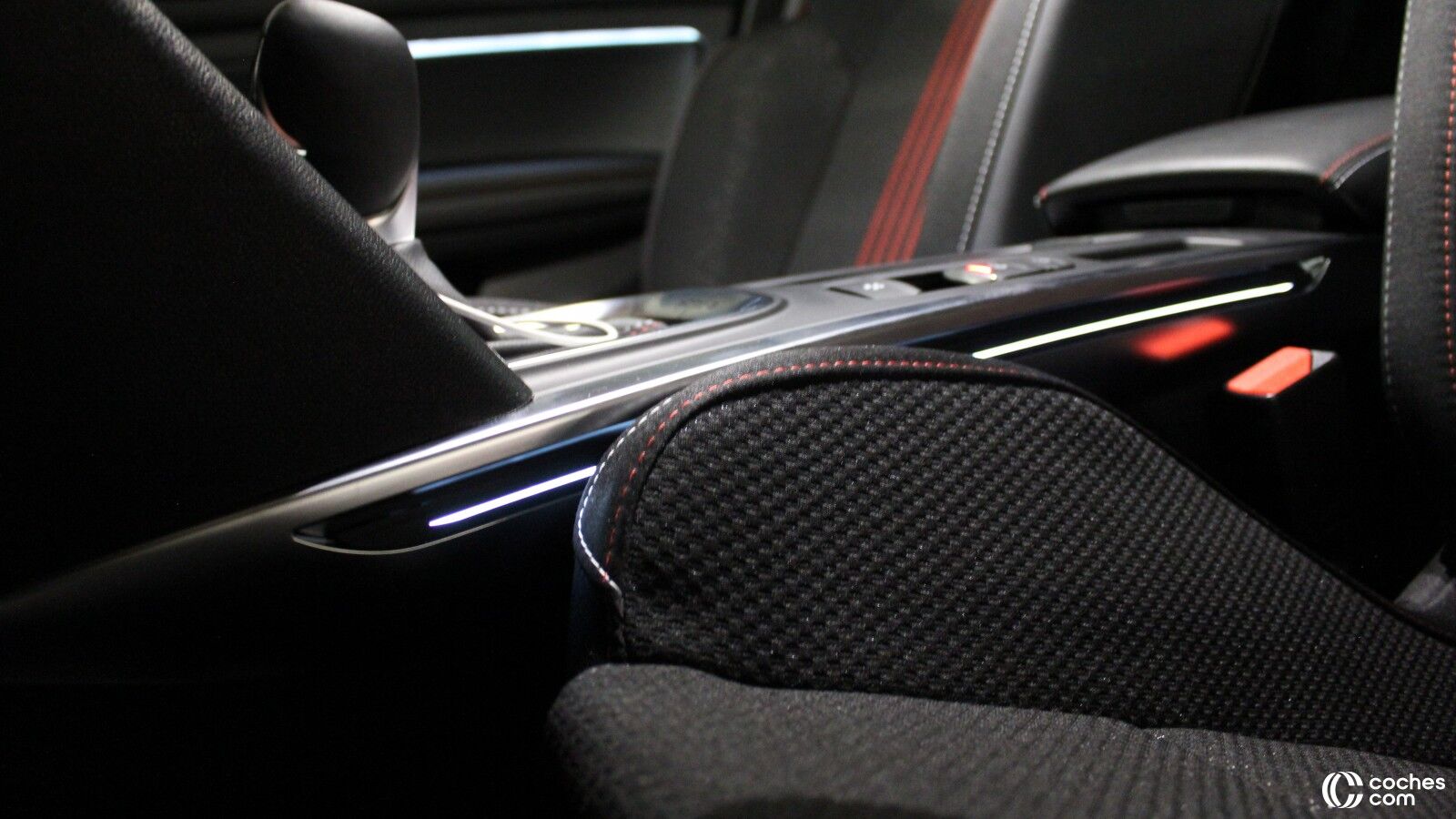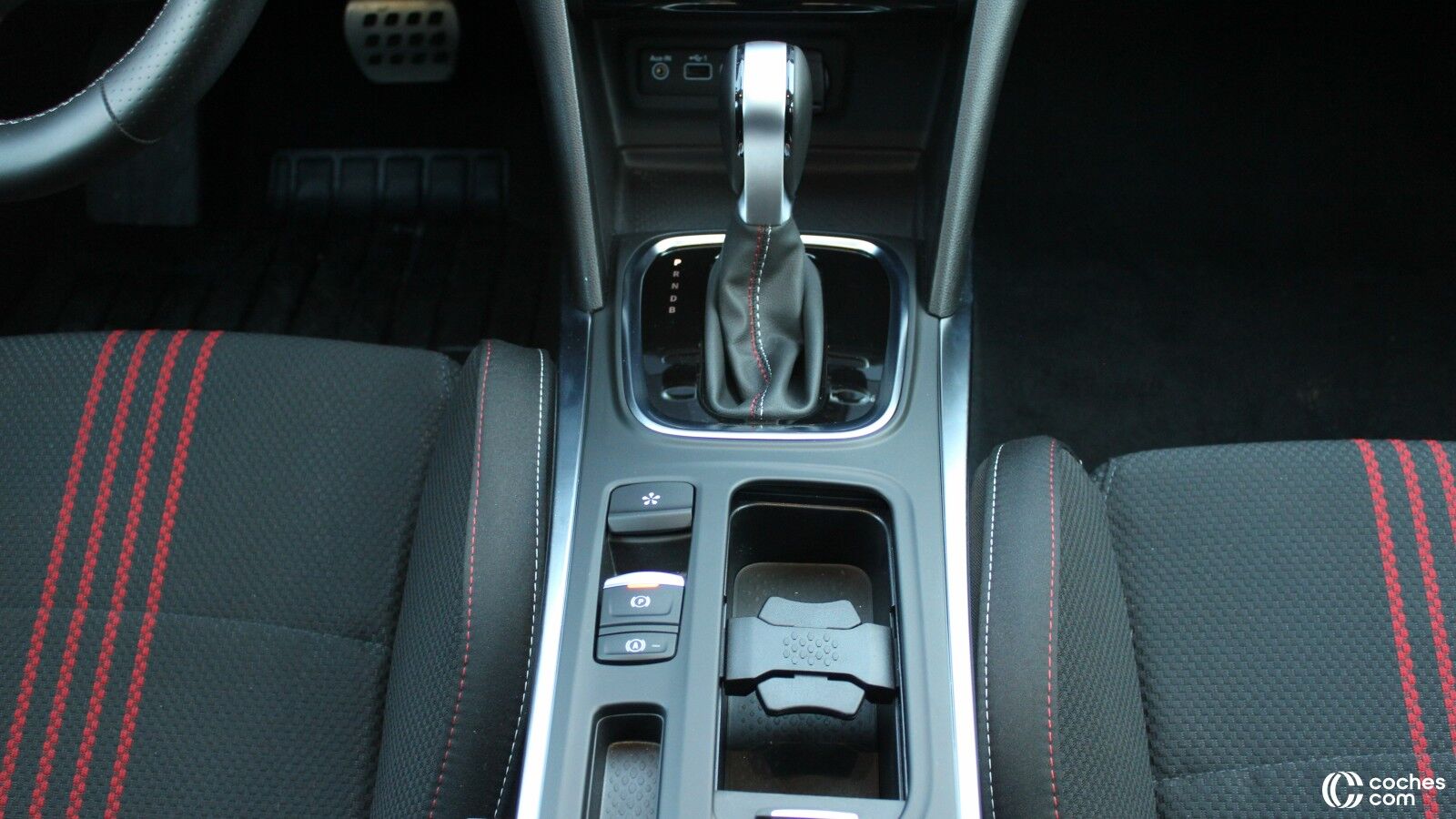 El sistema de climatización también es de nueva factura y, siguiendo los pasos del Clio, estrena un conjunto de botones que mezcla lo analógico con lo digital. Me gusta, aunque agradecería también que los controles de dirección de aire fuesen físicos. También es de apreciar la llegada de la luz ambiental (presente en las puertas y la consola central), la distribución clásica de los mandos y el tacto de la palanca de cambios, con una sección central fresada en aluminio y una funda de cuero con las costuras en contraste de color rojo.