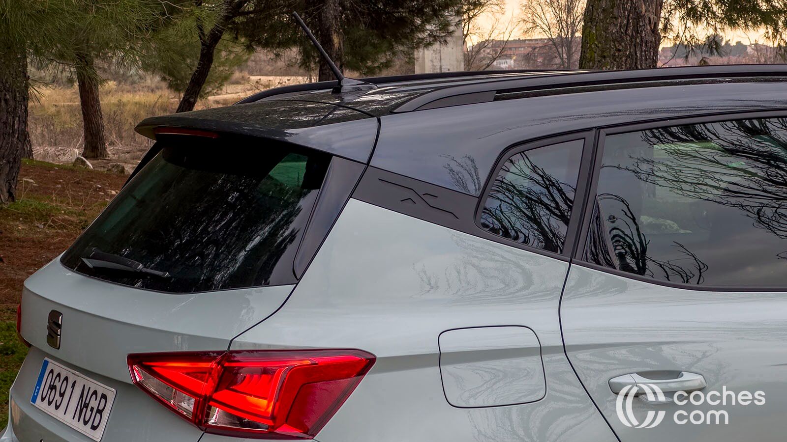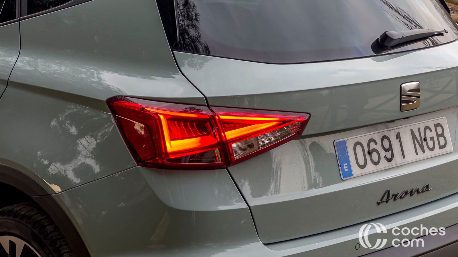 Si nos movemos hacia la parte trasera del SEAT Arona lo cierto es que vemos que se mantienen sus formas. El pilar C tiene un toque inclinado para quedar unido visualmente con el spoiler de techo. En la zona del portón están los pilotos traseros, también con tecnología LED, además de la nueva tipografía con el nombre del modelo en la parte central. La principal novedad sería el difusor trasero en aluminio oscuro que aparece en la parte inferior para mantener el contraste. En la paleta de colores de este ejemplar se suman tres nuevos tonos, entre los que se encuentra este llamativo Oniric Grey.